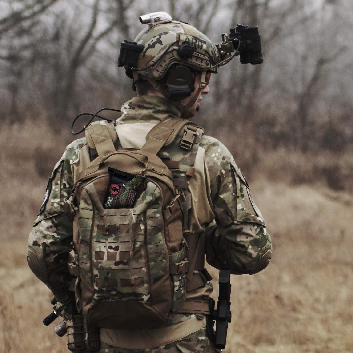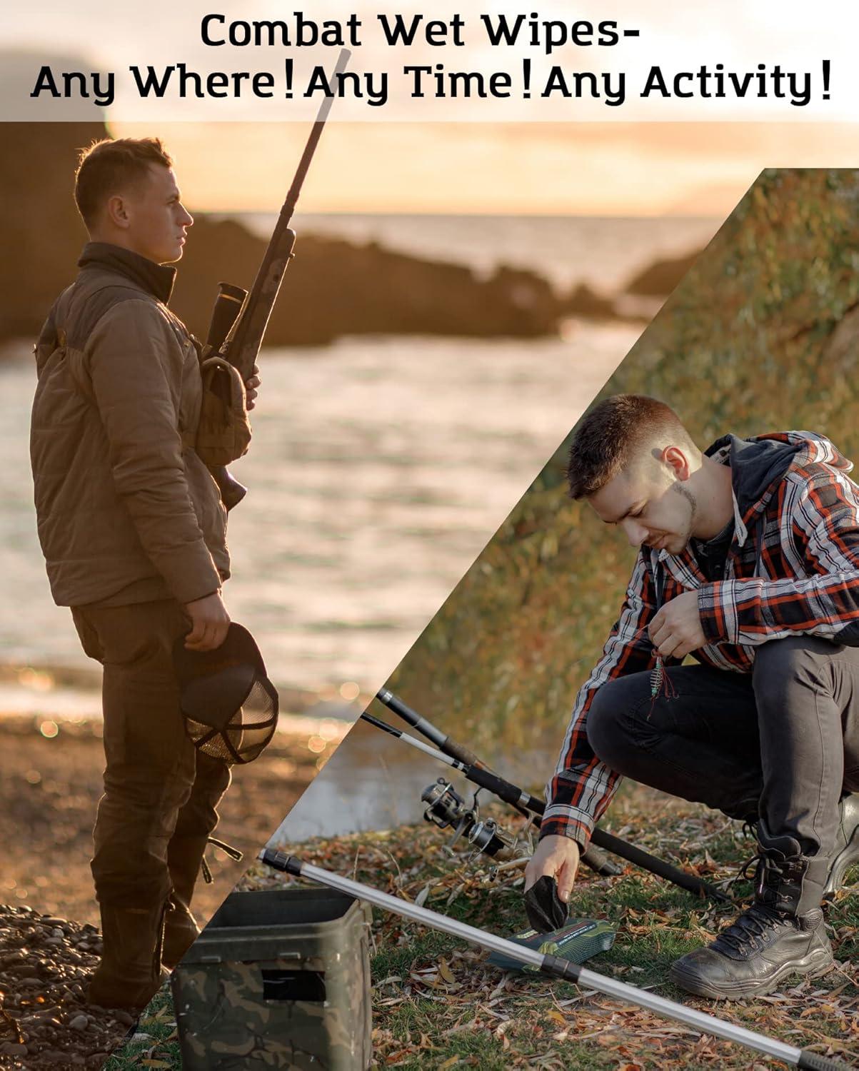 GENTLE ON SKIN: Composition of unique BLACK cloth and lotion was selected after extensive lab testing and battlefield experience. COMBAT WIPES COMMANDO are scent-free, alcohol-free, and have some aloe and vitamin E to soothe as you wipe.