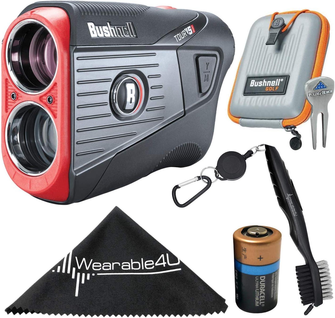 IN THE BOX: Bushnell Tour V5 Shift Laser Golf Rangefinder with included Carrying Case, Lens Cloth and selected Wearable4U Golf Tool Bundle (Divot Repair Tool)