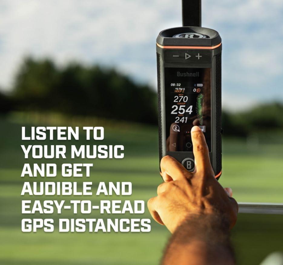 Premium 360° Audio – Dual 10-watt drivers with passive radiators deliver rich sound with deep bass, perfect for music on and off the course.