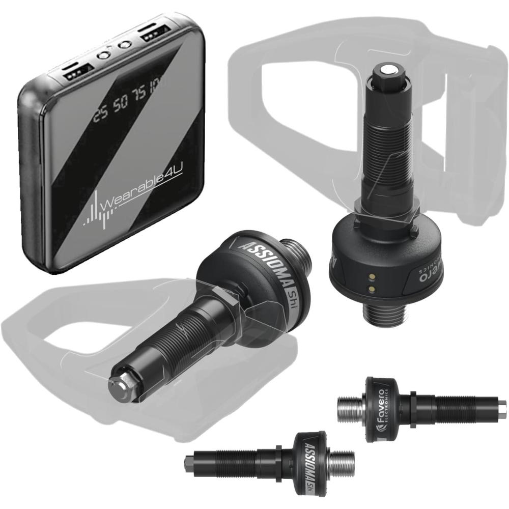 Favero Assioma PRO RS-1/MX Single-Sensing Power Meter Set, Road & Off-Road Riding – Shimano SPD-SL & SPD MTB Compatibility, Easy-to-Transfer, Cycling Dynamics w/ Wearable4U PowerBank Bundle