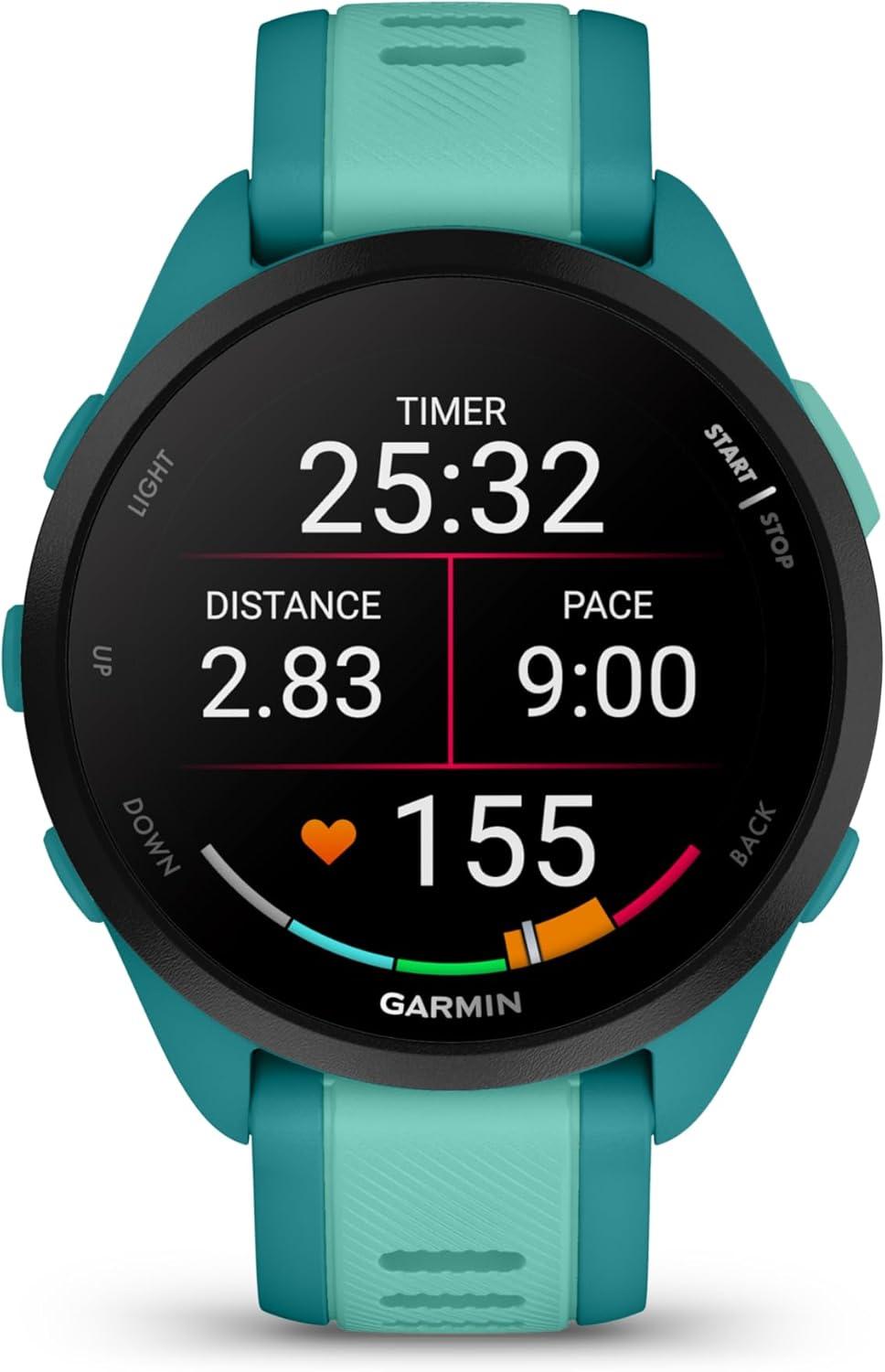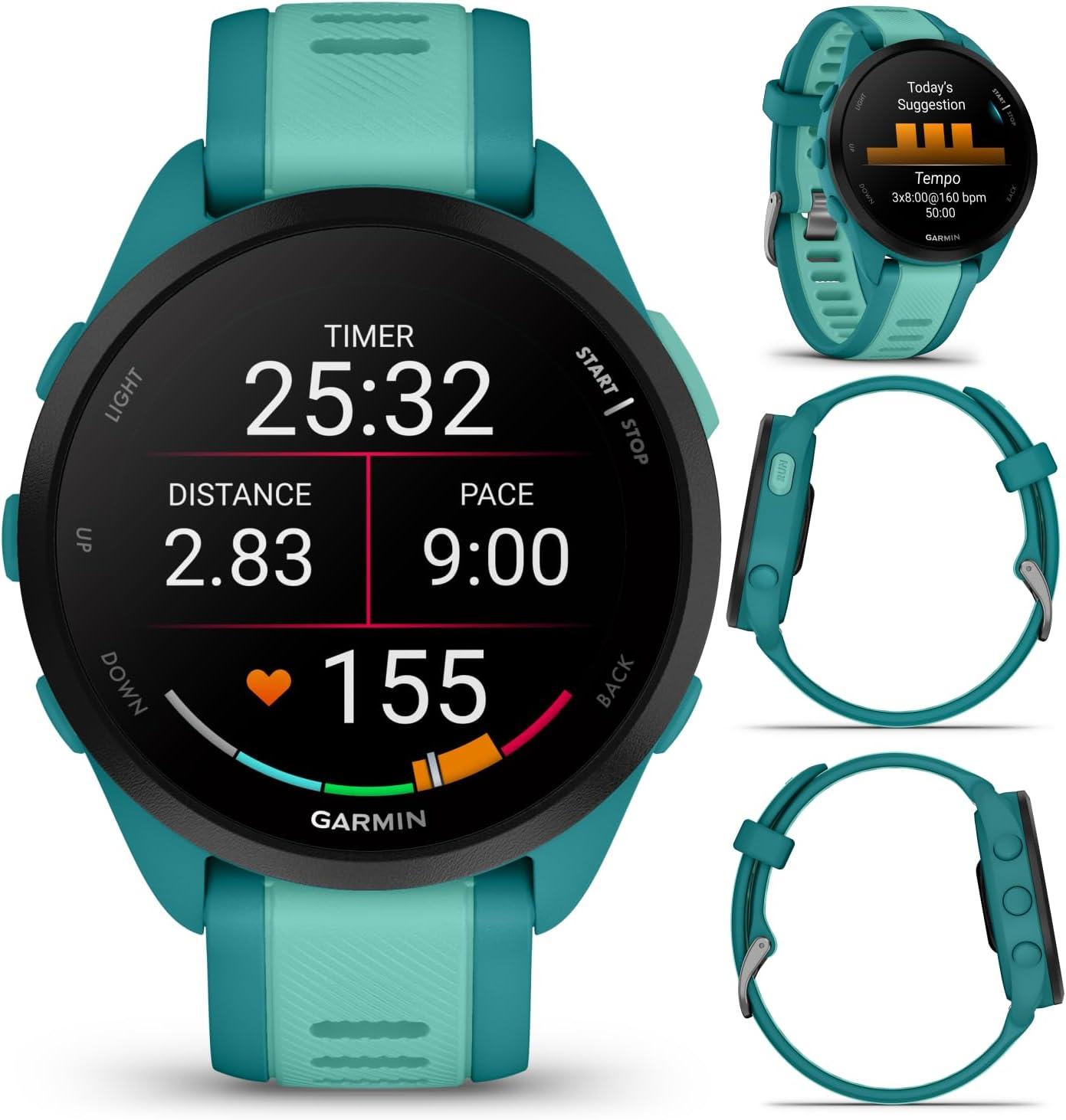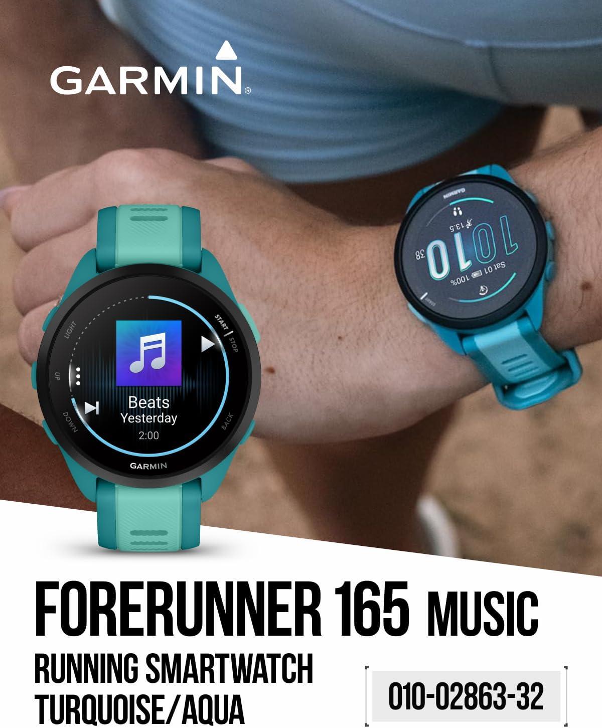 Garmin Forerunner 165 Music Running Smartwatch, Colorful AMOLED Touchscreen, Training Metrics and Recovery Insights Includes Wearable4U PowerPack +Adapters Bundle, Berry/Lilac(Turquoise/Aqua)
