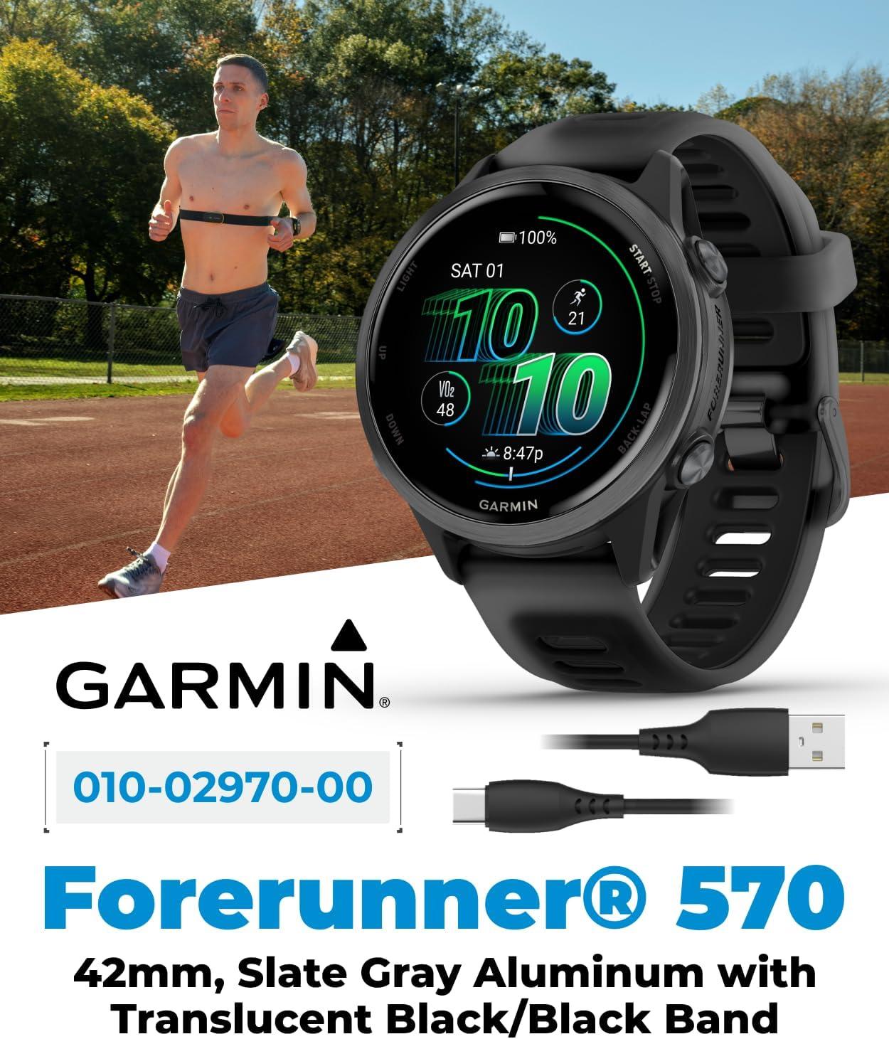 imageGarmin Forerunner 570 47mm Advanced GPS Running ampamp Triathlon Smartwatch AMOLED Display Training ampamp Recovery Amp Yellow Aluminum wTranslucent WhitestoneTurquoise Band w Wearable4U PowerBank BundleSlate  Black Band BLK EarBuds