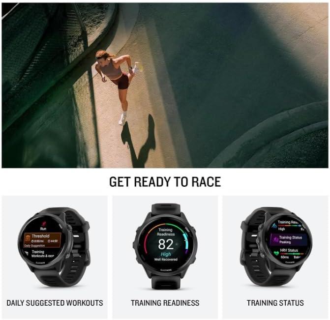 Up to 11 days of battery life in smartwatch mode and up to 18 hours in GPS mode for a more complete picture of your training and recovery. Train for an event, achieve a milestone, or improve your fitness with Garmin Coach training plans; these running and triathlon plans are personalized to you and adapt based on your performance and recovery