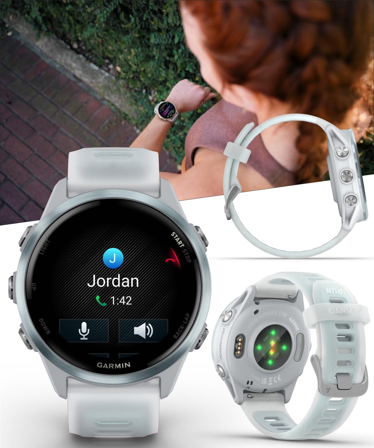 imageGarmin Forerunner 570 47mm Advanced GPS Running ampamp Triathlon Smartwatch AMOLED Display Training ampamp Recovery Amp Yellow Aluminum wTranslucent WhitestoneTurquoise Band w Wearable4U PowerBank BundleIndigo Purple BLK EarBuds