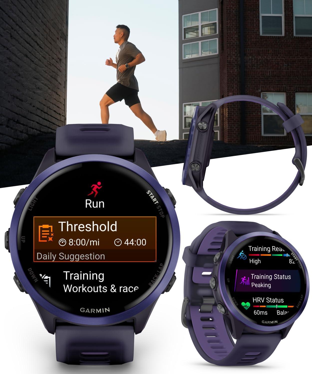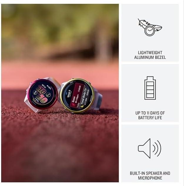 Up to 11 days of battery life in smartwatch mode and up to 18 hours in GPS mode for a more complete picture of your training and recovery. Train for an event, achieve a milestone, or improve your fitness with Garmin Coach training plans; these running and triathlon plans are personalized to you and adapt based on your performance and recovery