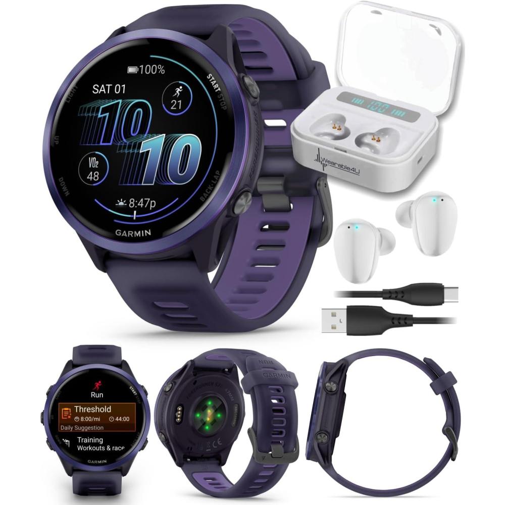 Up to 11 days of battery life in smartwatch mode and up to 18 hours in GPS mode for a more complete picture of your training and recovery. Train for an event, achieve a milestone, or improve your fitness with Garmin Coach training plans; these running and triathlon plans are personalized to you and adapt based on your performance and recovery