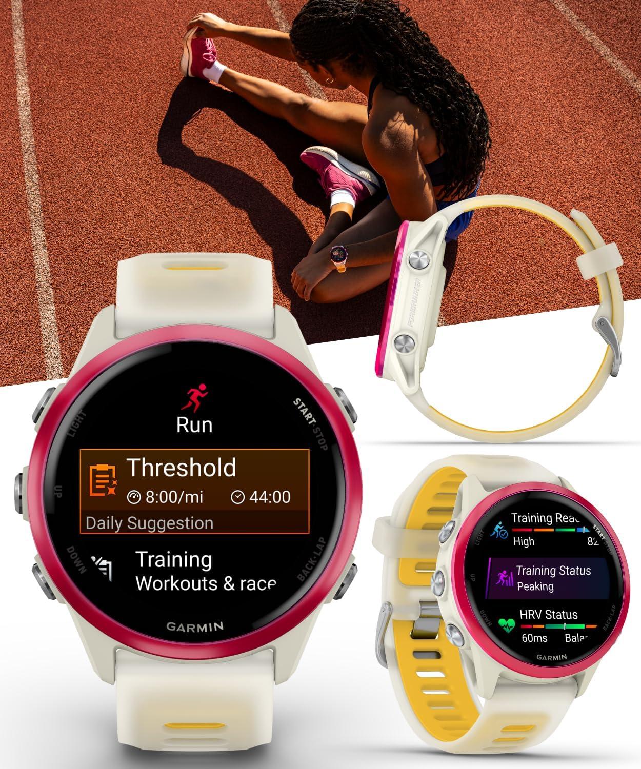 Up to 11 days of battery life in smartwatch mode and up to 18 hours in GPS mode for a more complete picture of your training and recovery. Train for an event, achieve a milestone, or improve your fitness with Garmin Coach training plans; these running and triathlon plans are personalized to you and adapt based on your performance and recovery