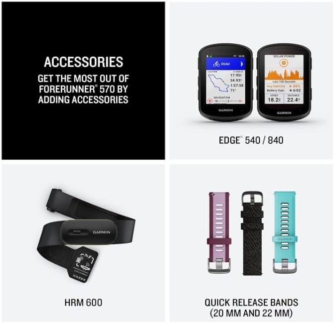 imageGarmin Forerunner 570 47mm Advanced GPS Running ampamp Triathlon Smartwatch AMOLED Display Training ampamp Recovery Amp Yellow Aluminum wTranslucent WhitestoneTurquoise Band w Wearable4U PowerBank BundleIndigo Purple WHT EarBuds