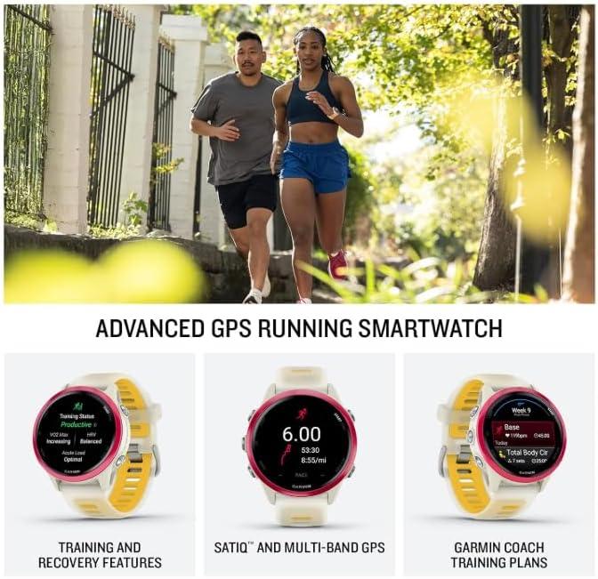 Up to 11 days of battery life in smartwatch mode and up to 18 hours in GPS mode for a more complete picture of your training and recovery. Train for an event, achieve a milestone, or improve your fitness with Garmin Coach training plans; these running and triathlon plans are personalized to you and adapt based on your performance and recovery
