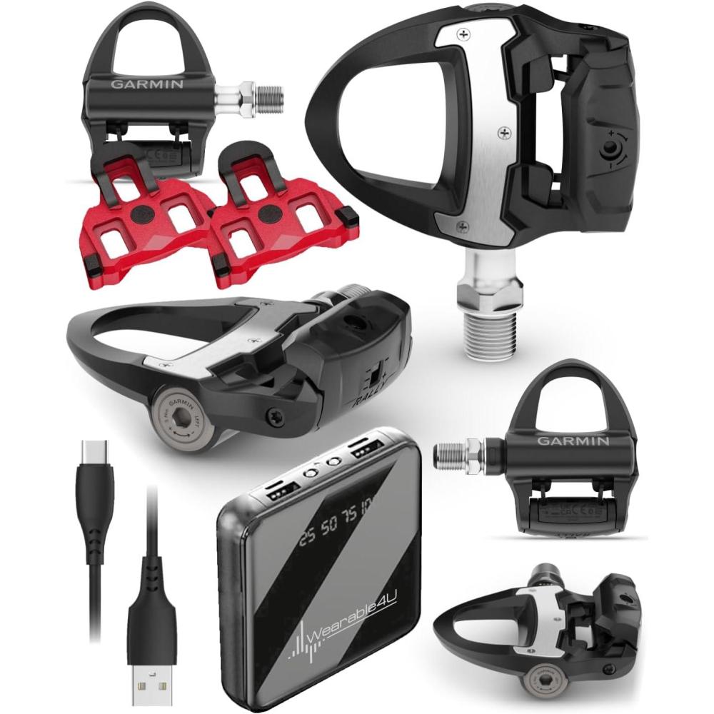 imageGarmin Rally RS110 SingleSensing Power Meter Pedals for Road Shimano SPDSL Cleat Compatible Rechargeable 90h Ride Time Cycling Dynamics Metrics w Wearable4U PowerBank Bundle