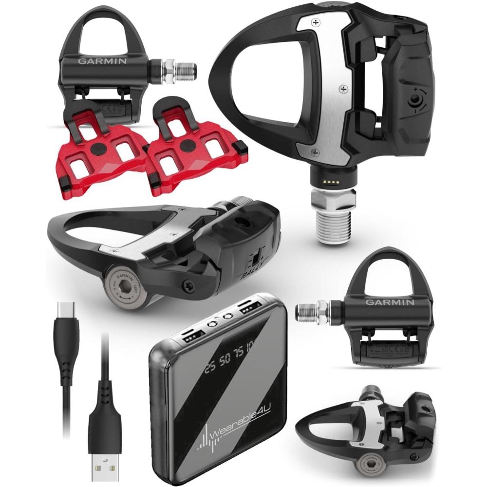 Garmin Rally RS210 Dual-Sensing Power Meter Pedals for Road, Shimano SPD-SL Cleat Compatible, Rechargeable 90h Ride Time, Cycling Dynamics Metrics w/ Wearable4U PowerBank Bundle
