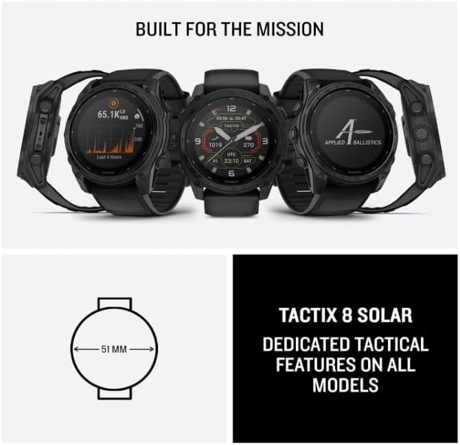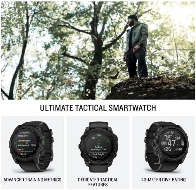 imageGarmin Tactix 8 51mm Solar Elite Titanium Bezel Sapphire Lens Premium Tactical GPS Smartwatch Includes Applied Ballistics Ultralight Elite Solver 40M Dive Rating wWearable4U PowerBank BundleAMOLED