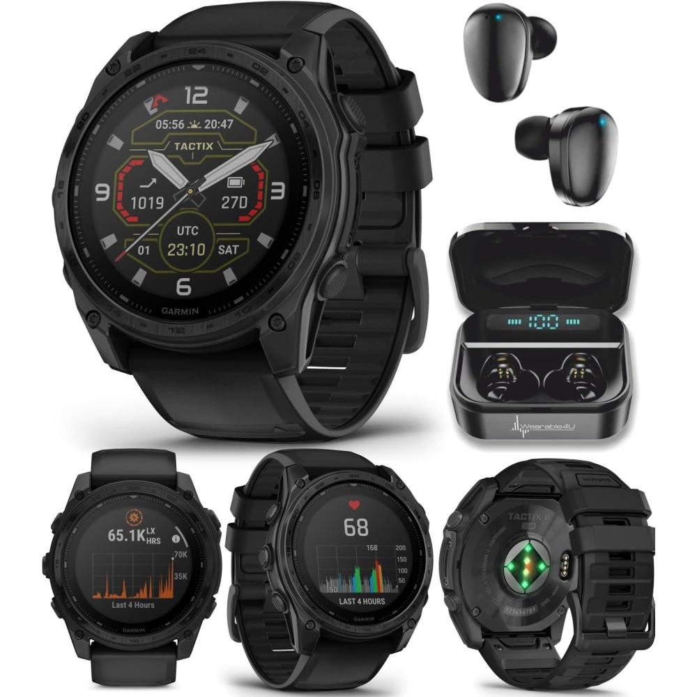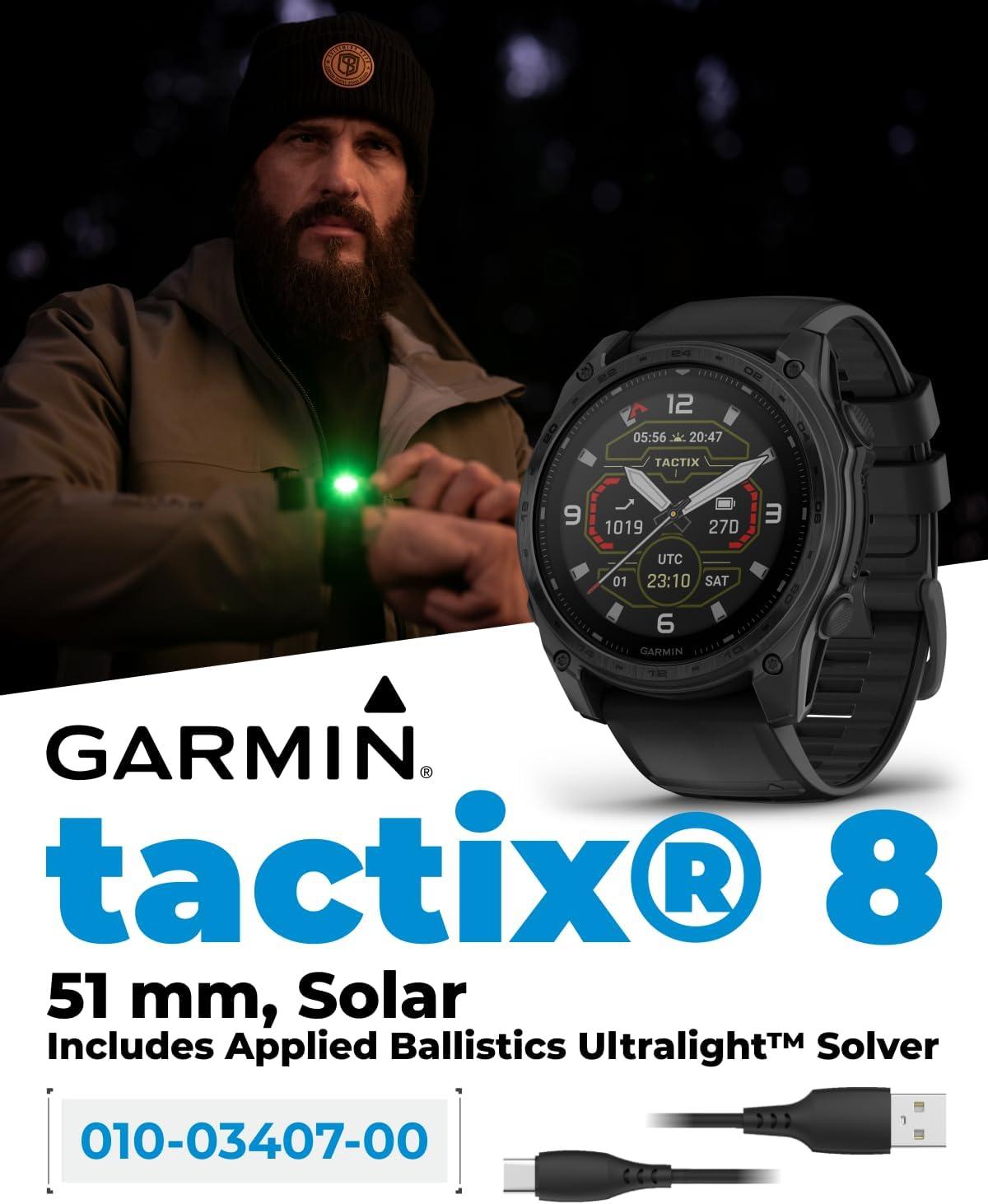 Garmin Tactix 8, 51mm Solar, Elite, Titanium Bezel, Sapphire Lens, Premium Tactical GPS Smartwatch, Includes Applied Ballistics Ultralight Elite Solver, 40M Dive Rating w/Wearable4U PowerBank Bundle(SOLAR)