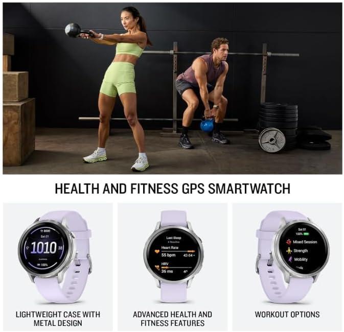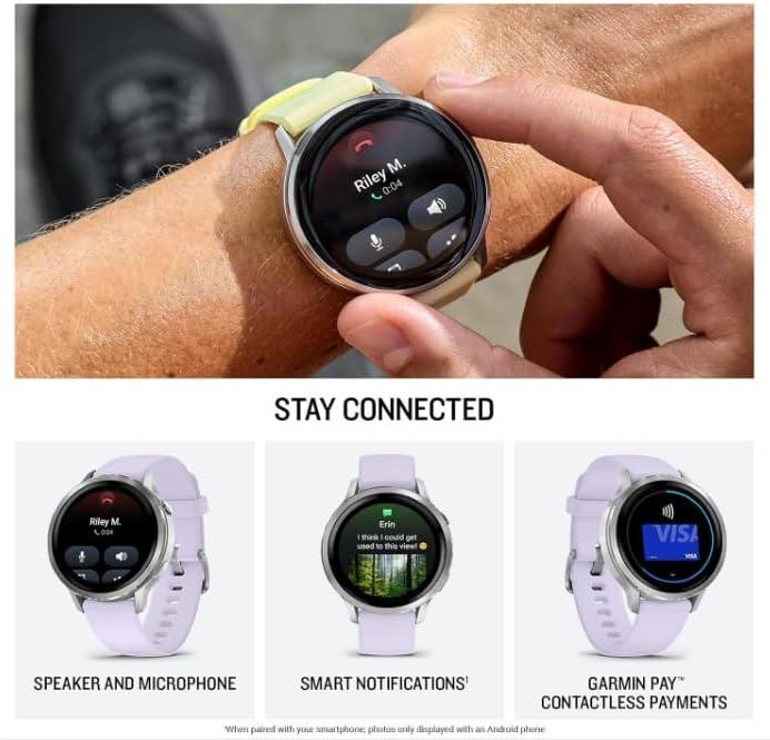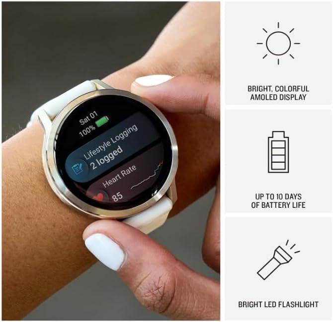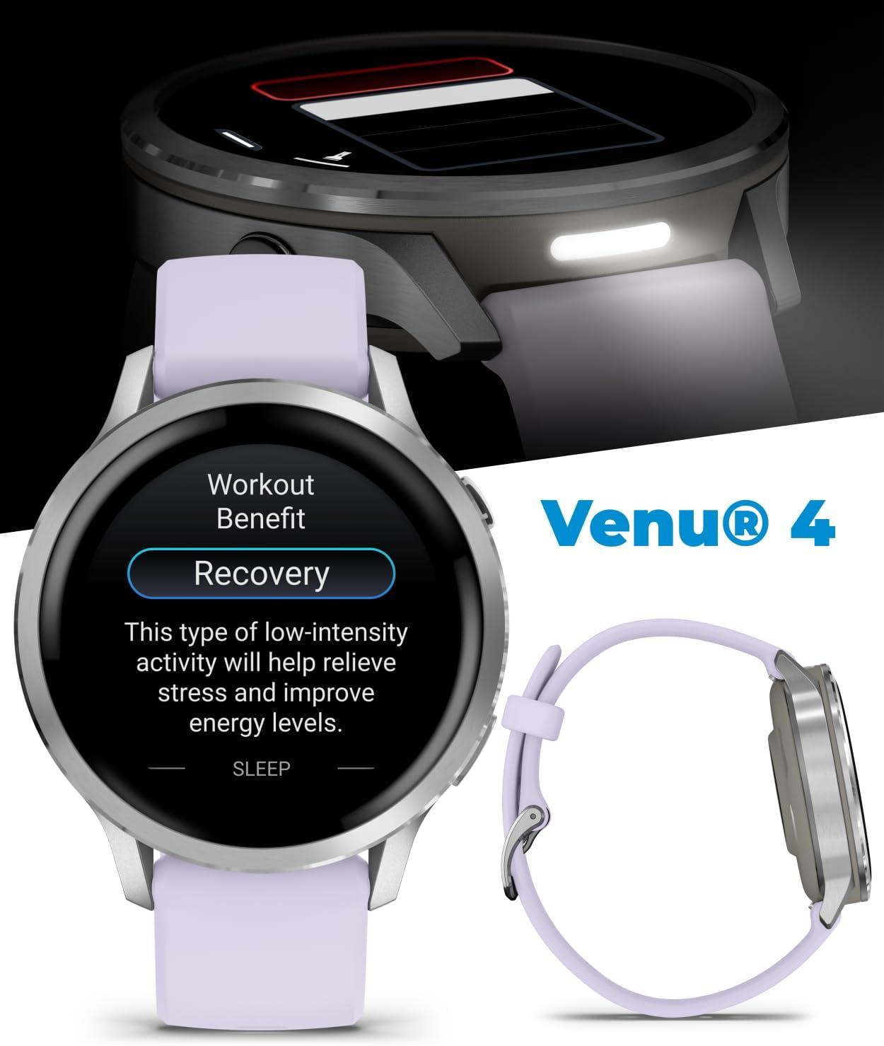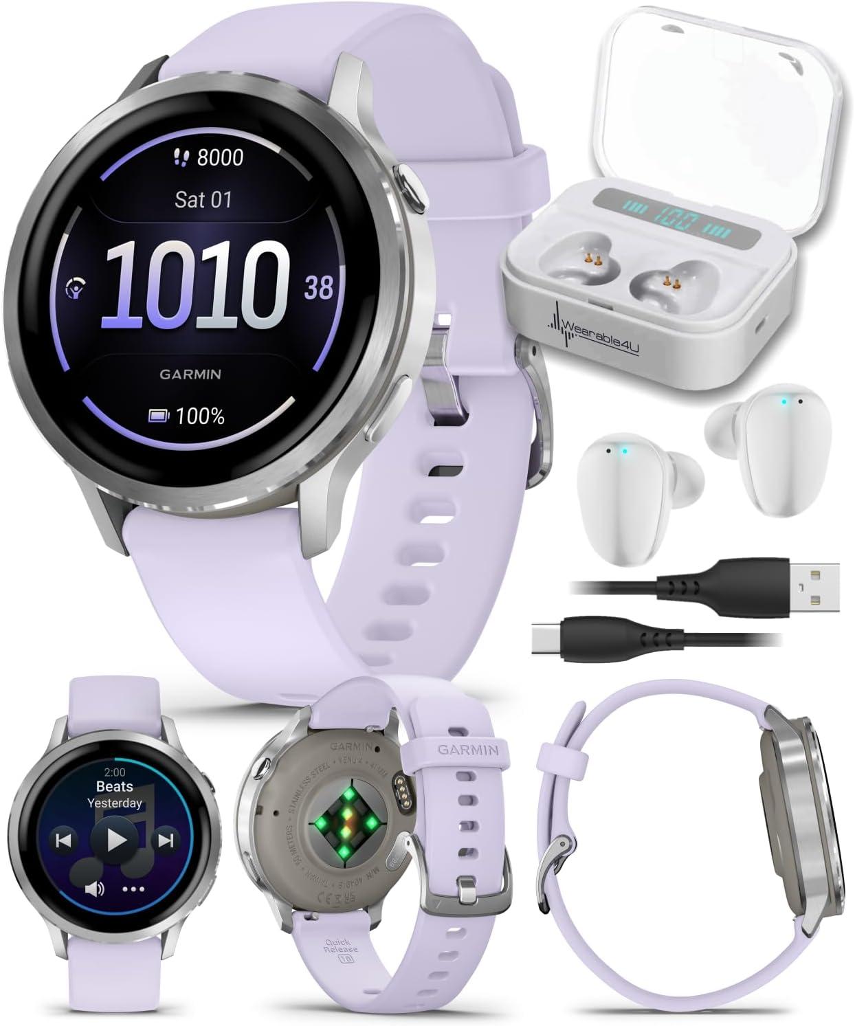 imageGarmin Venu 4 41mm AMOLED Advanced Health ampamp Fitness GPS Smartwatch Bright ampamp Colorful Display Builtin Flashlight Up to 10 Days Slate with Black Silicone Band wWearable4U White Earbuds BundleSilverPeriwinkle