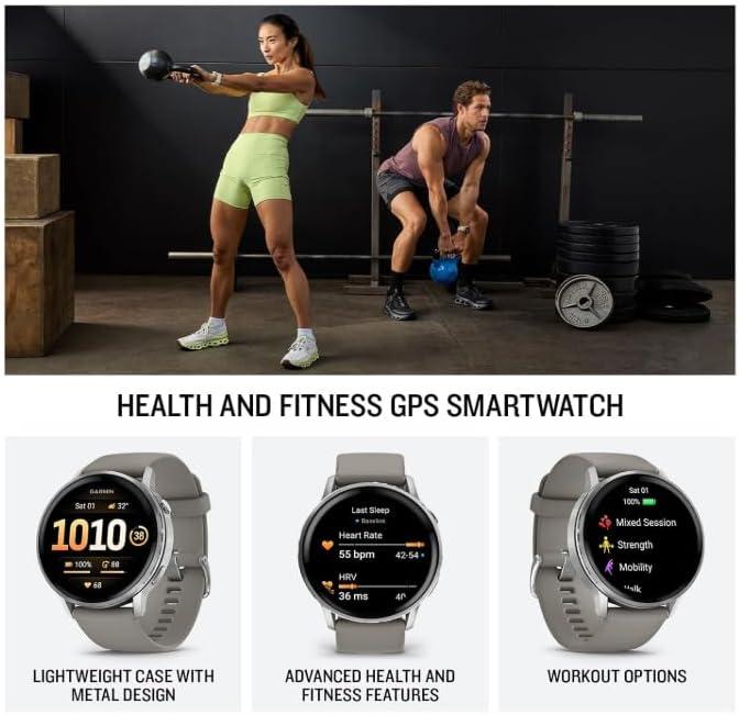 imageGarmin Venu 4 45mm AMOLED Advanced Health ampamp Fitness GPS Smartwatch Bright ampamp Colorful Display Builtin Flashlight Up to 12 Days Silver wSilver Gray Silicone Band wWearable4U Black Earbuds BundleSilverGray