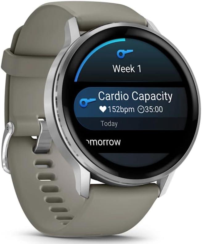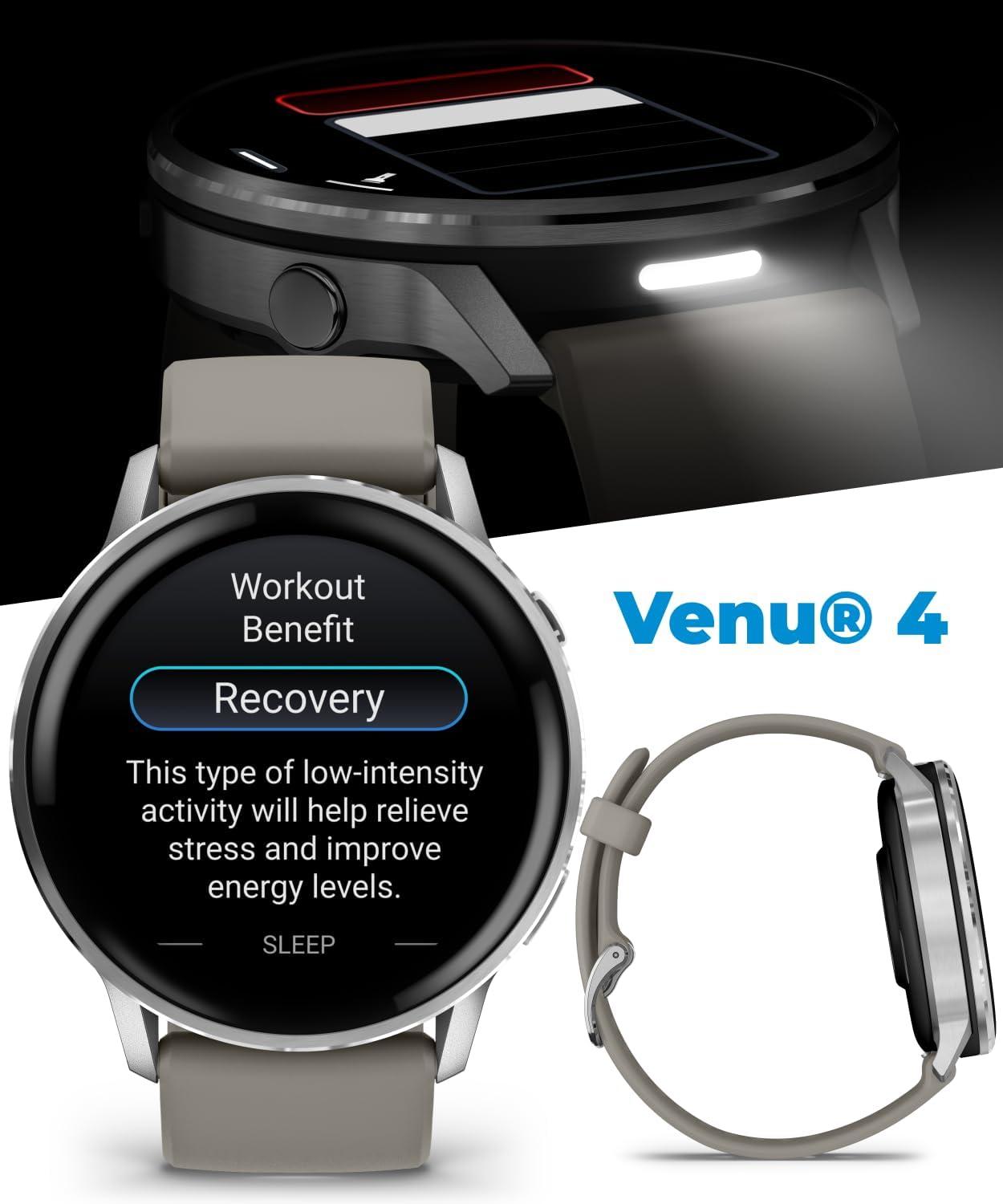 imageGarmin Venu 4 45mm AMOLED Advanced Health ampamp Fitness GPS Smartwatch Bright ampamp Colorful Display Builtin Flashlight Up to 12 Days Silver wSilver Gray Silicone Band wWearable4U Black Earbuds BundleSilverPeriwinkle