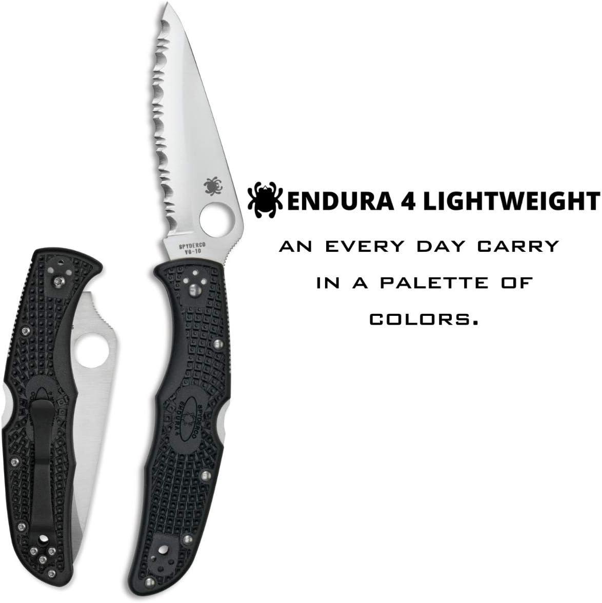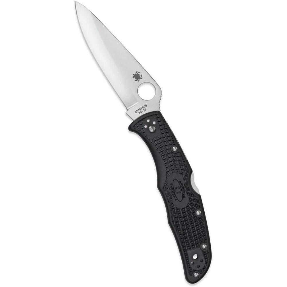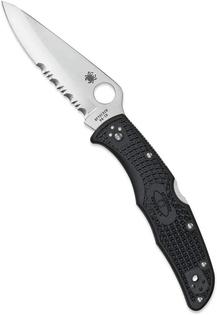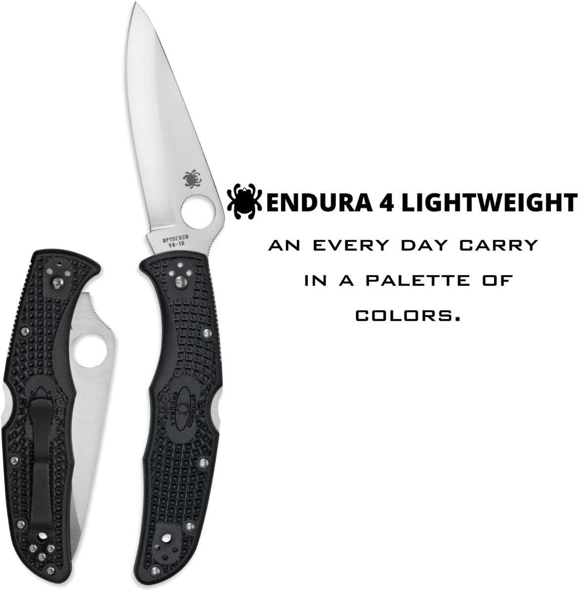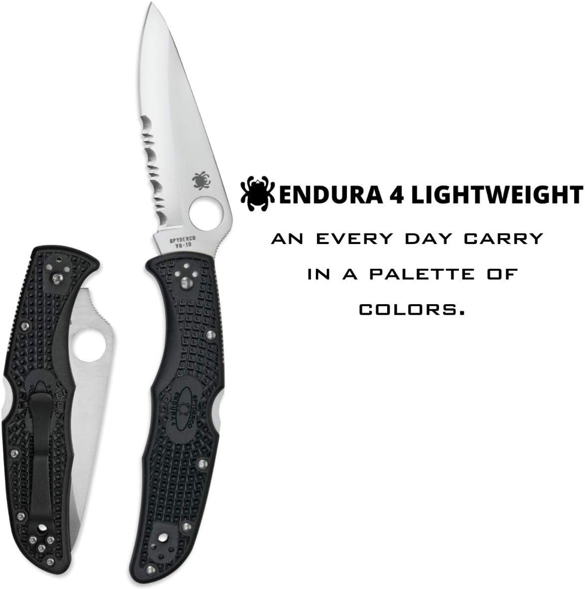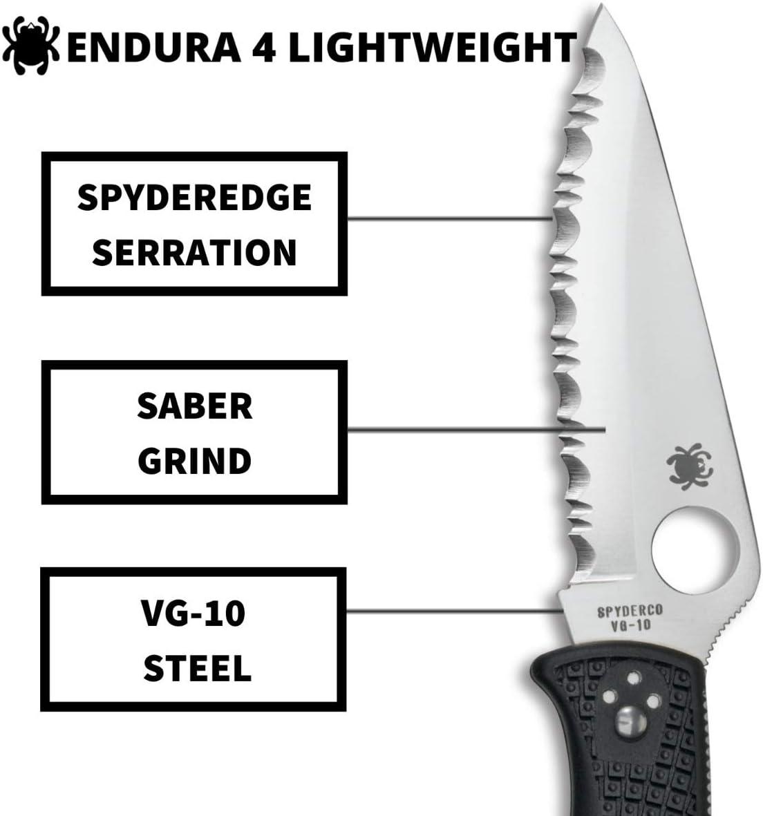 Spyderco Endura 4 Folding Pocket Knife with 3.8″ VG-10 Steel Blade and FRN Handle – EDC Knife for Men and Women, Perfect for Hunting, Tactical, Camping, Survival, Hiking – CombinationEdge – C10PSFG(Black Handle – Stainless Steel Blade)