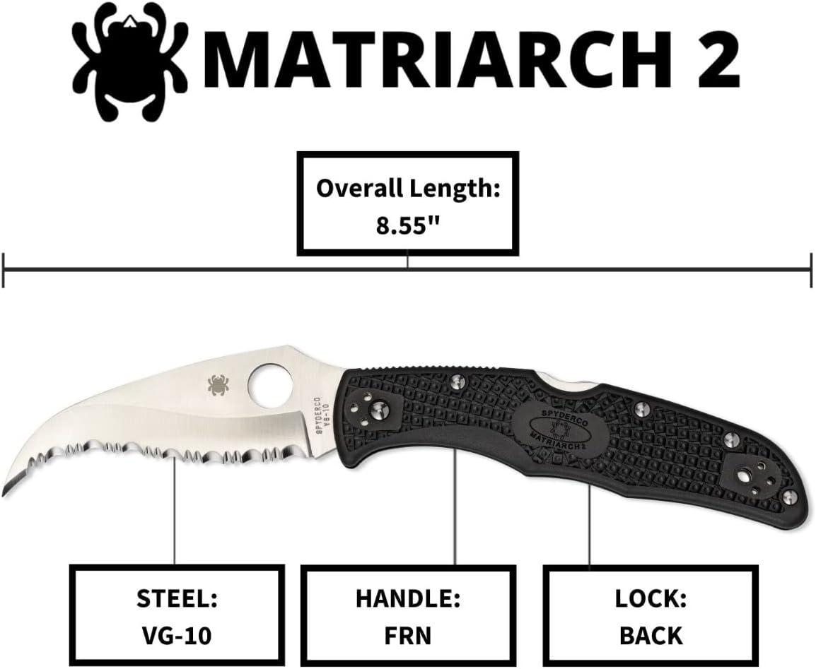 Spyderco Matriarch 2 Lightweight Knife with Emerson Opener and 3.57" VG-10 Steel Reverse S Blade - SpyderEdge - C12SBK2W(Standard)