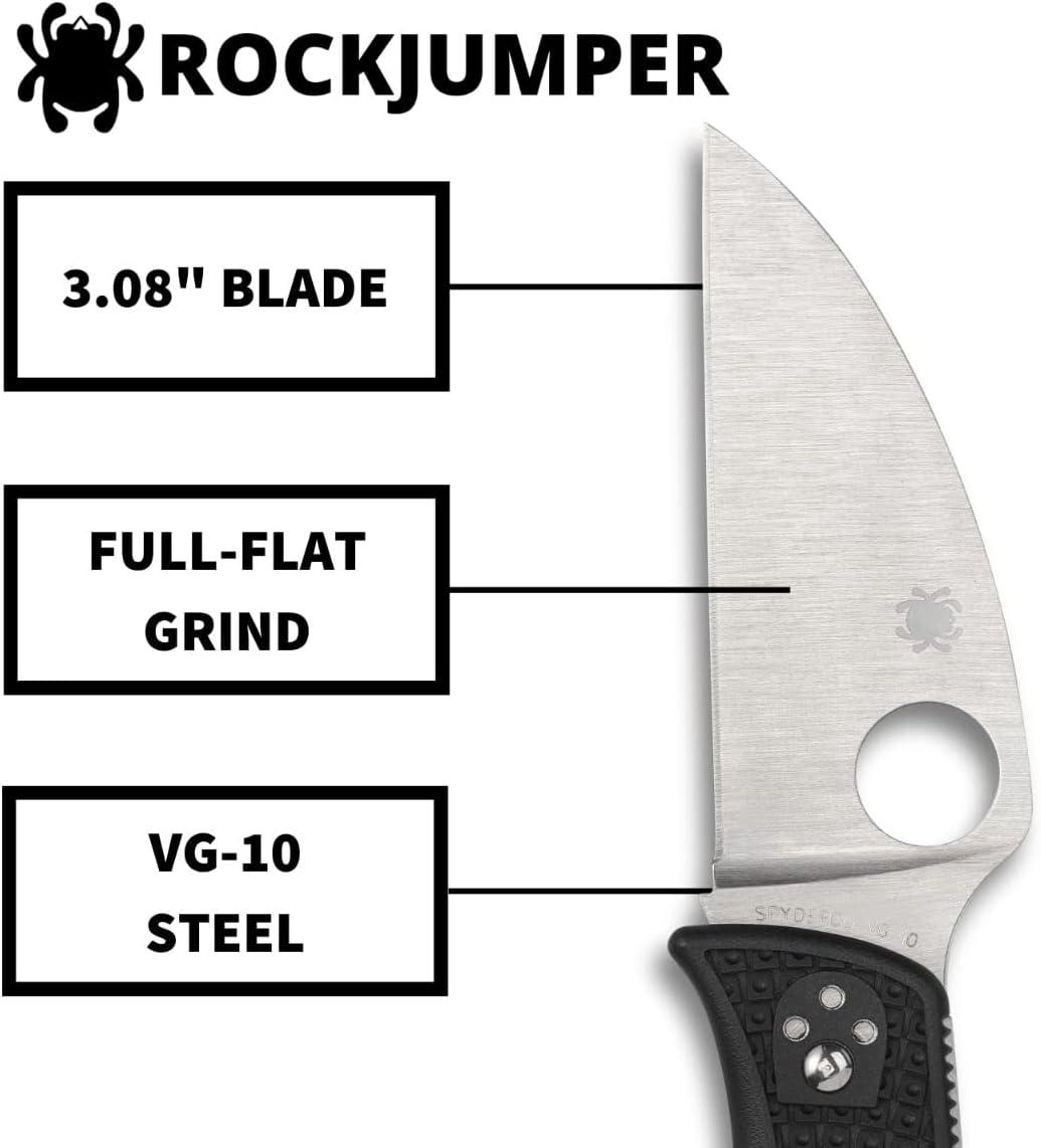 Spyderco RockJumper Lightweight Knife with 3.08″ VG-10 Steel Wharncliffe Blade and Black FRN Handle – SpyderEdge – C254SBK(PlainEdge)