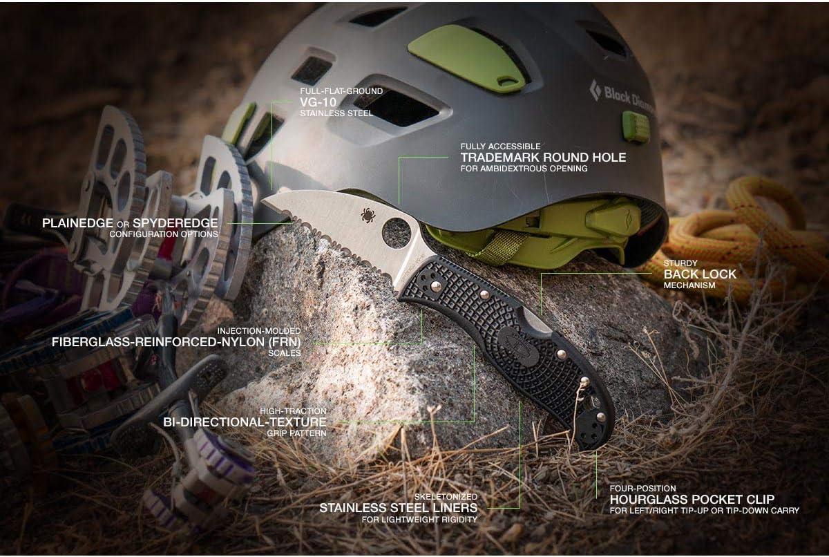 Light and Durable: The knife's hand-filling handle is constructed with skeletonized Stainless Steel liners, fiberglass-reinforced-nylon (FRN) scales, and a stout back lock mechanism with a strong self-close function.