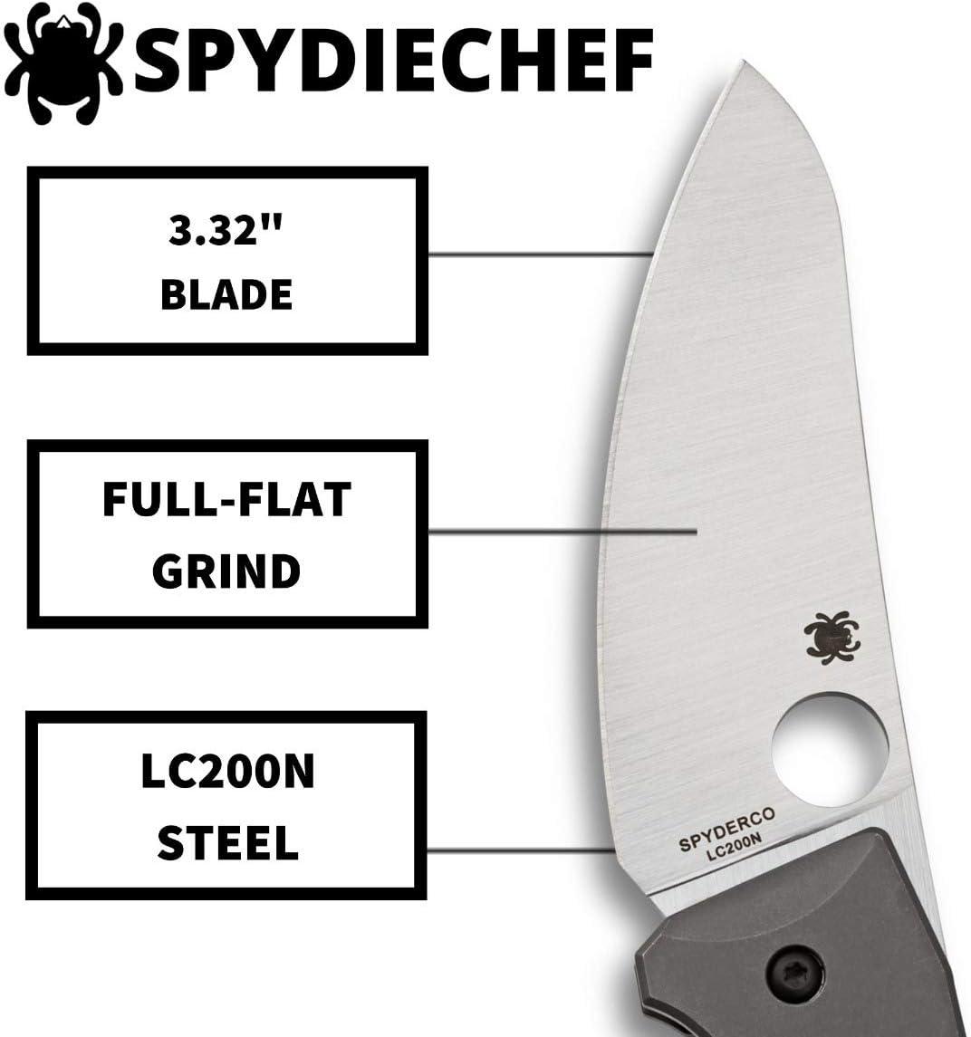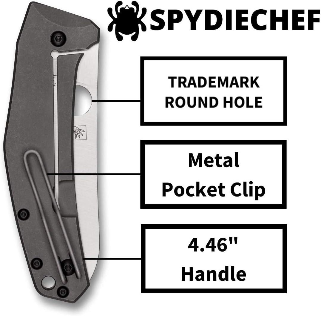 Ergonomic: To reduce weight, optimize balance, and simplify cleaning, the Spydiechef features an open-backed handle constructed with two precision-machined solid titanium scales.