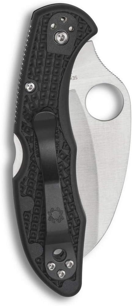 Versatile: It is available with either PlainEdge or fully serrated SpyderEdge cutting edge, the radically curved hawkbill blade of the Tasman 2 literally “collects” the material it cuts, drawing it into the concave edge like an animal's claw.
