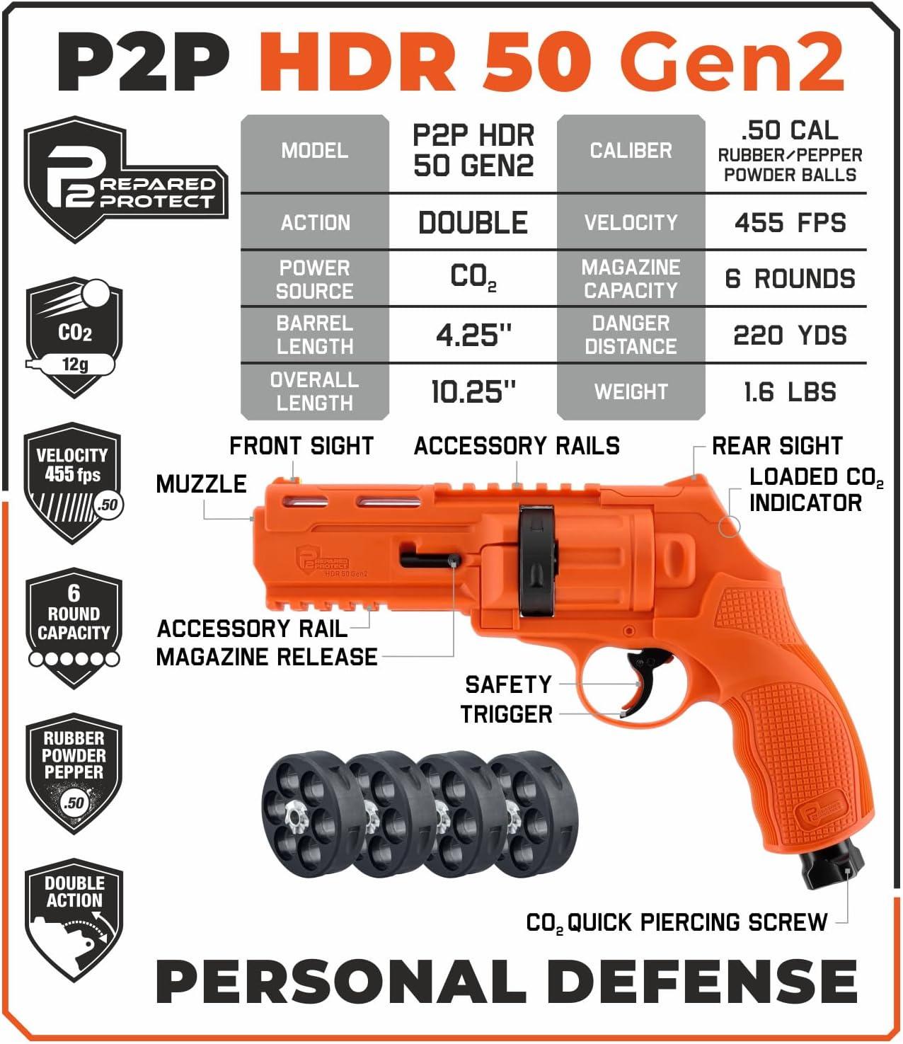 .50 Caliber Paintball. 6-Shot Magazine. Velocity: 455 fps. Trigger: Double Action Only. Safety: Automatic Trigger Safety.