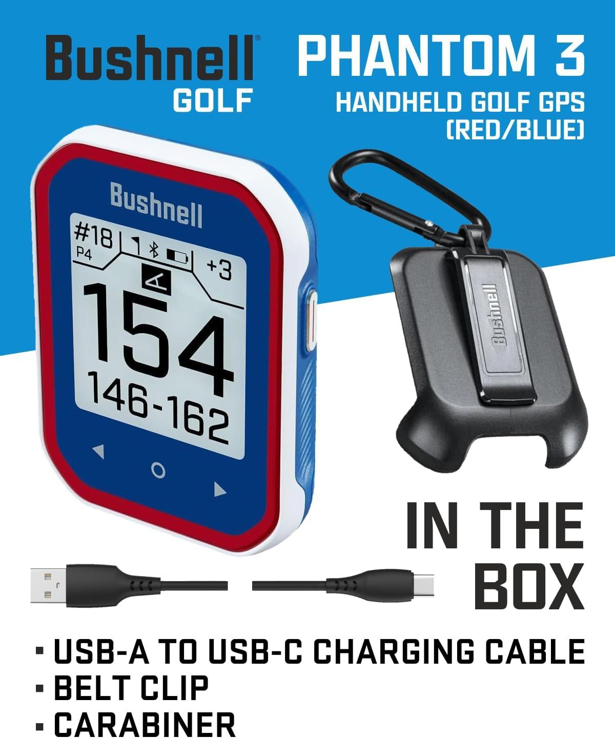 Wearable4U - Bushnell Phantom 3 Slope GPS Golf Green with Slope Technology, Touchscreen, Magnetic Cart Mount with Towel Bundle(Blue +Lens Cloth)