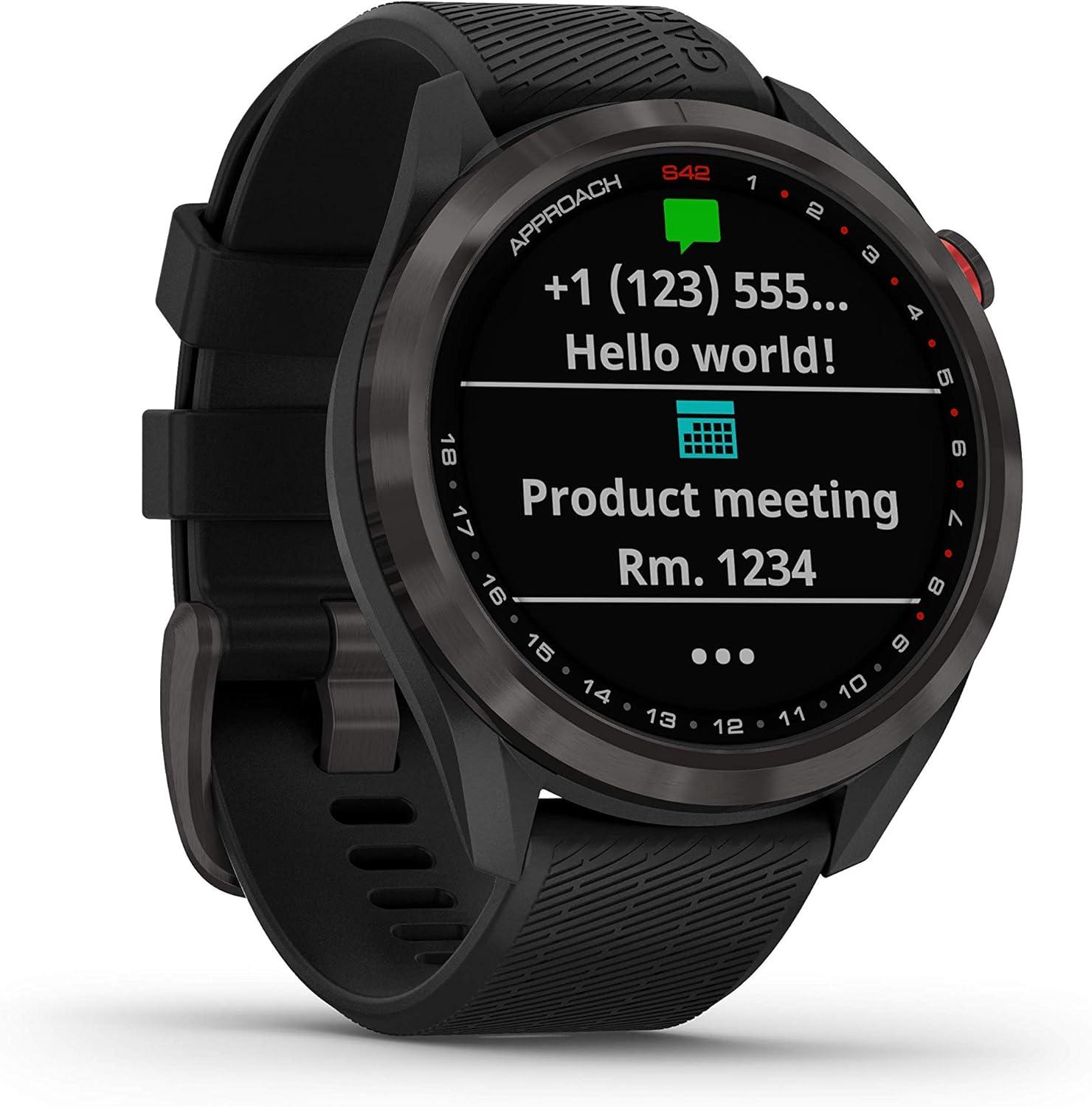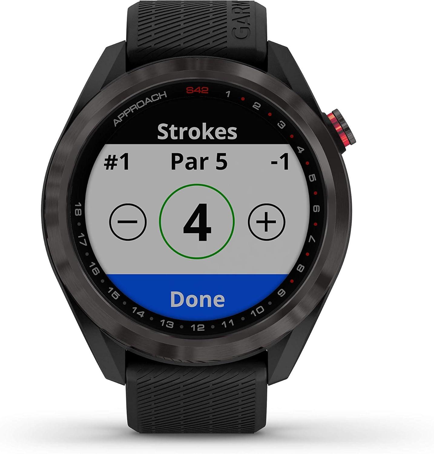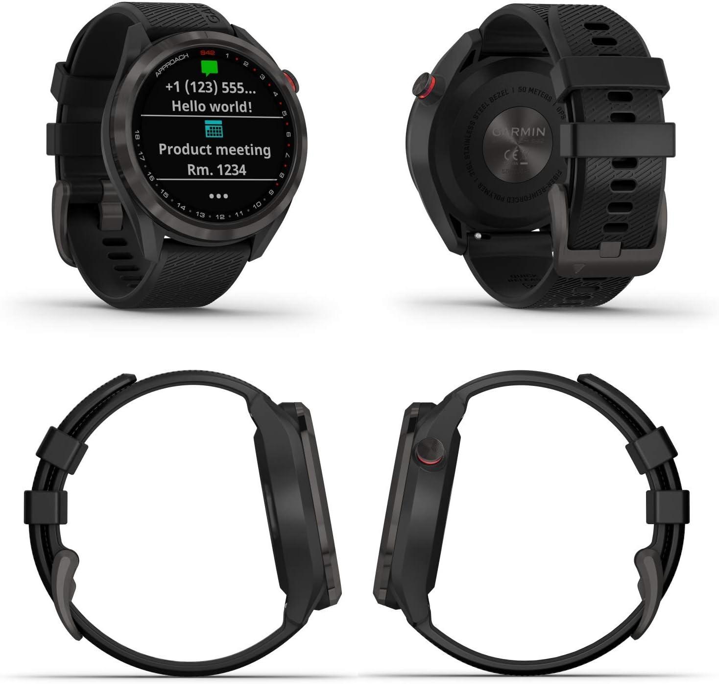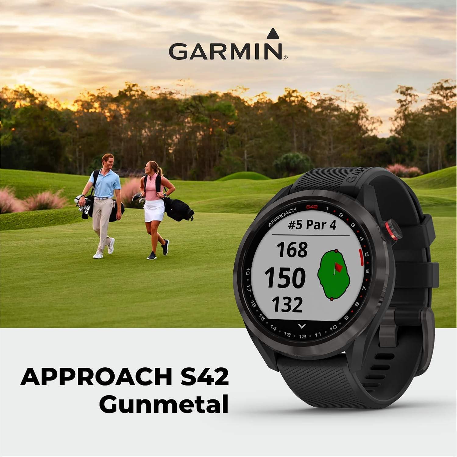 IN THE BOX: 1 x Garmin Approach S42 Premium GPS Golf Watch, Gunmetal with Black Silicone Band; 1 x Power Pack