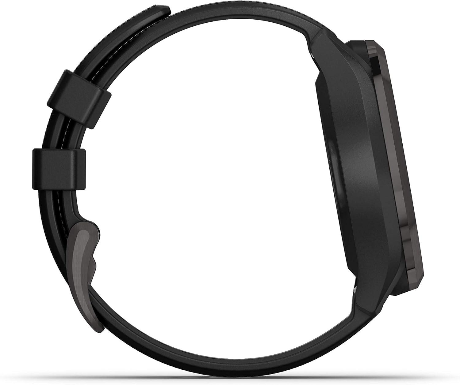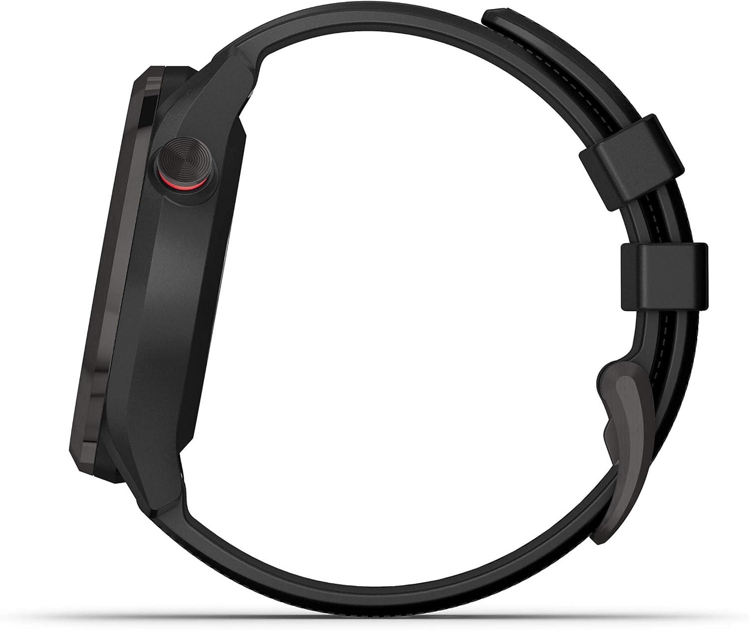 Green View feature allows manual pin positioning; quickly reference distances to the front, middle and back of the green as well as hazards and doglegs. Offers smart notifications (when paired with a compatible smartphone) and estimated activity-tracking features such as steps, sleep and built-in sports profiles.