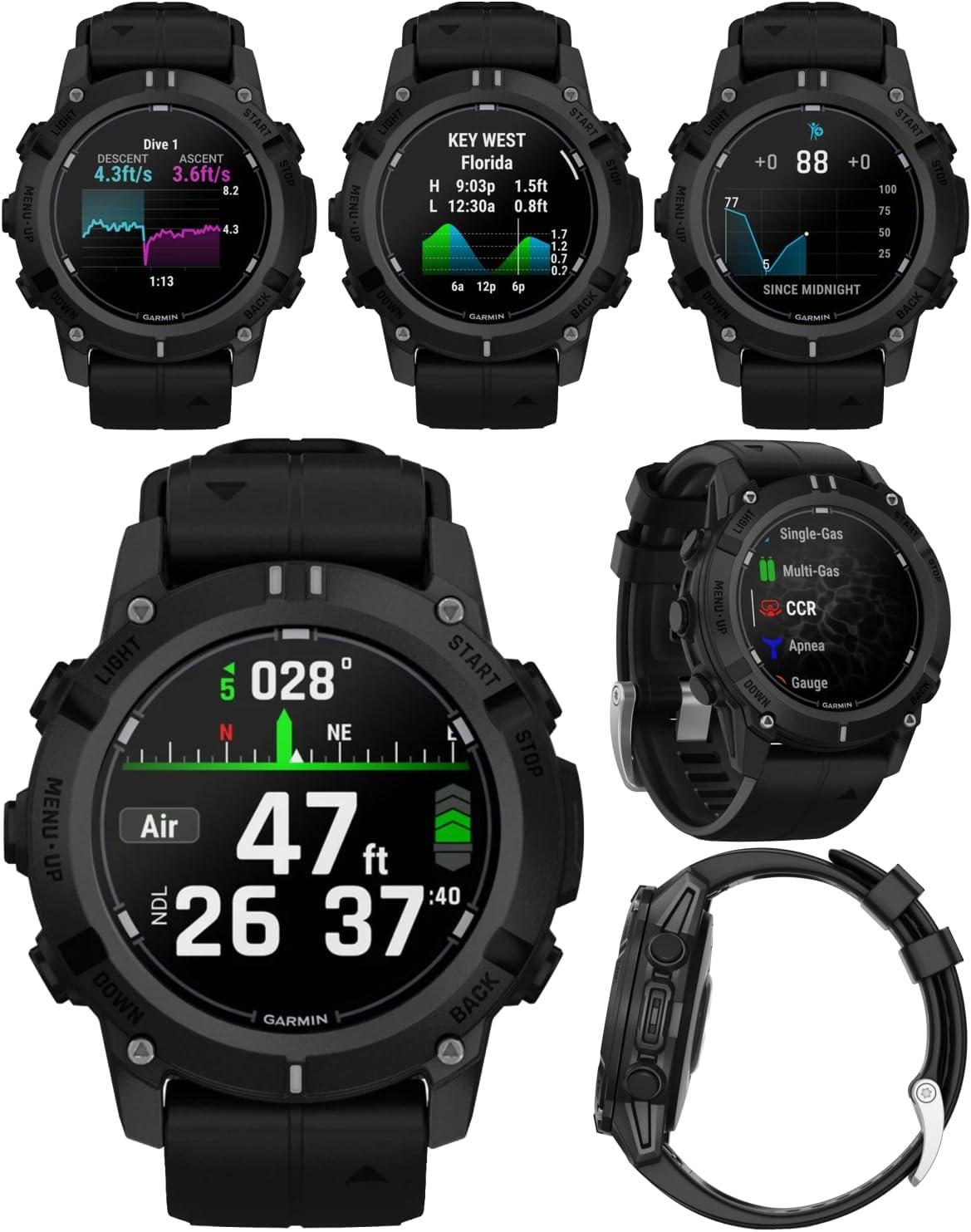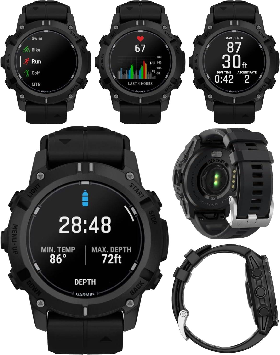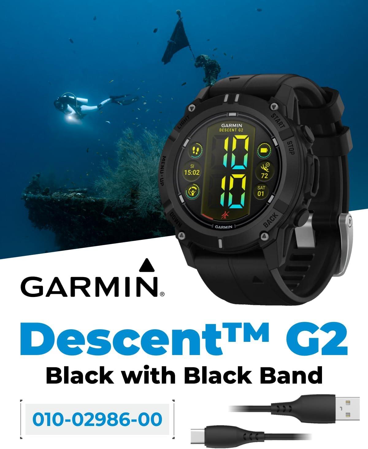 Wearable4U Garmin Descent G2 Watch-Style Dive Computer Smartwatch Black with Black Silicone Band, AMOLED Display, Diving PowerBank Bundle