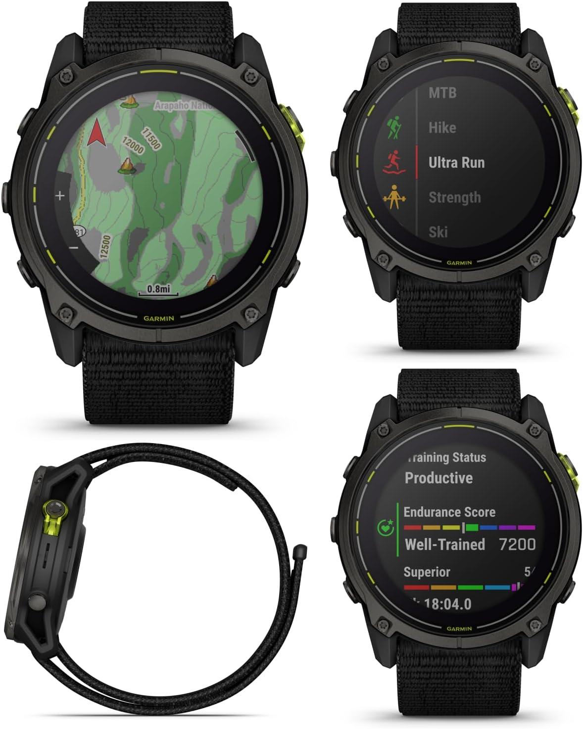 imageWearable4U Garmin Enduro 3  51 mm Solar Sapphire Ultraperformance GPS Smartwatch Carbon Gray DLC Titanium with Black UltraFit Nylon Strap BundleBlack EarBuds