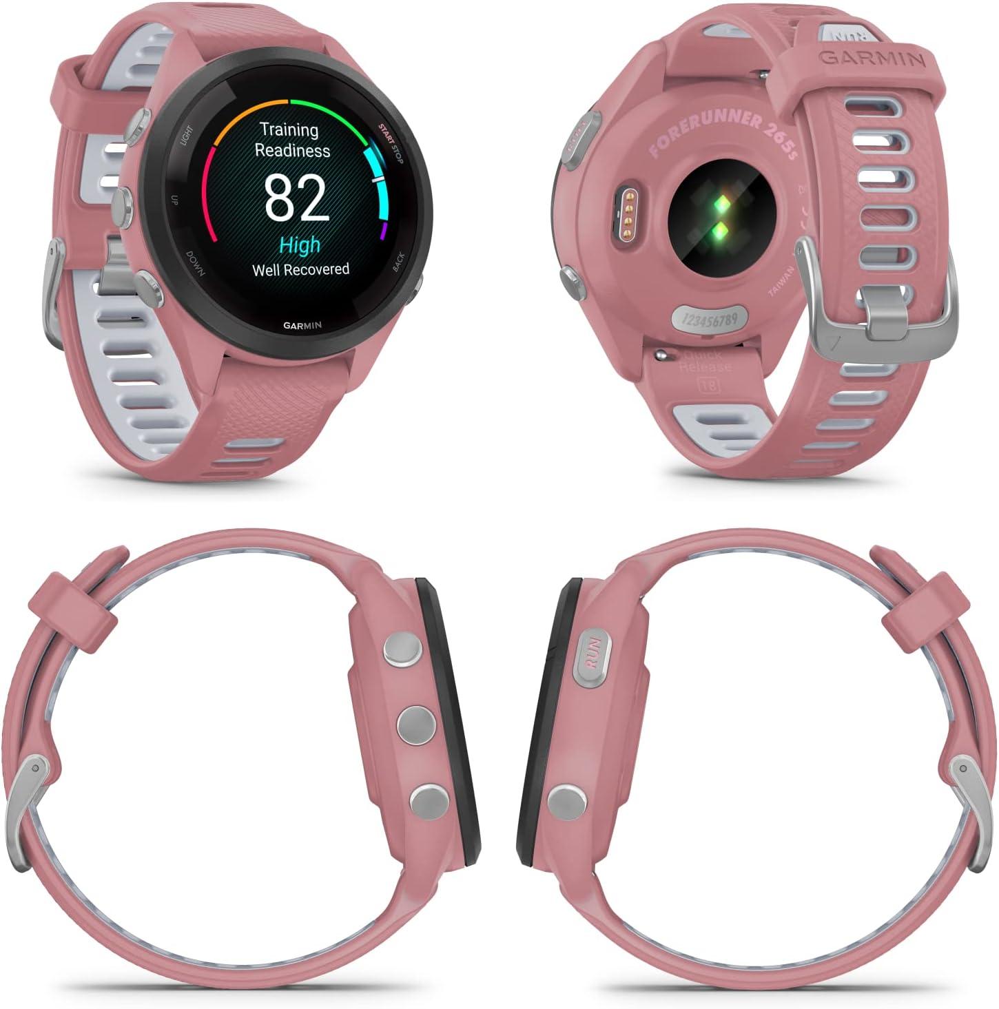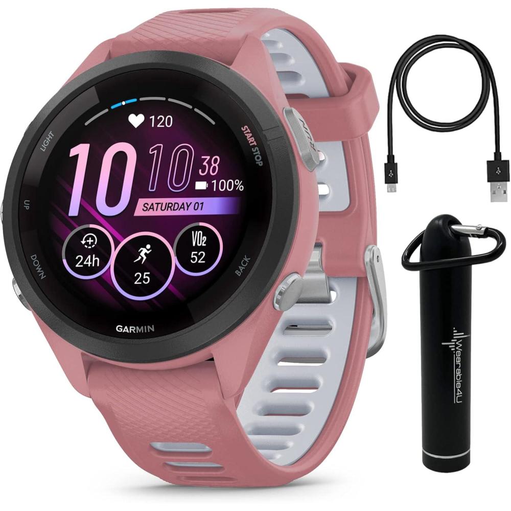 IN THE BOX: 1x Garmin Forerunner 265S GPS Running Smartwatch, Pink, 1x charging/data cable, 1x Wearable4U E-Bank (wa001), 1x microUSB cable