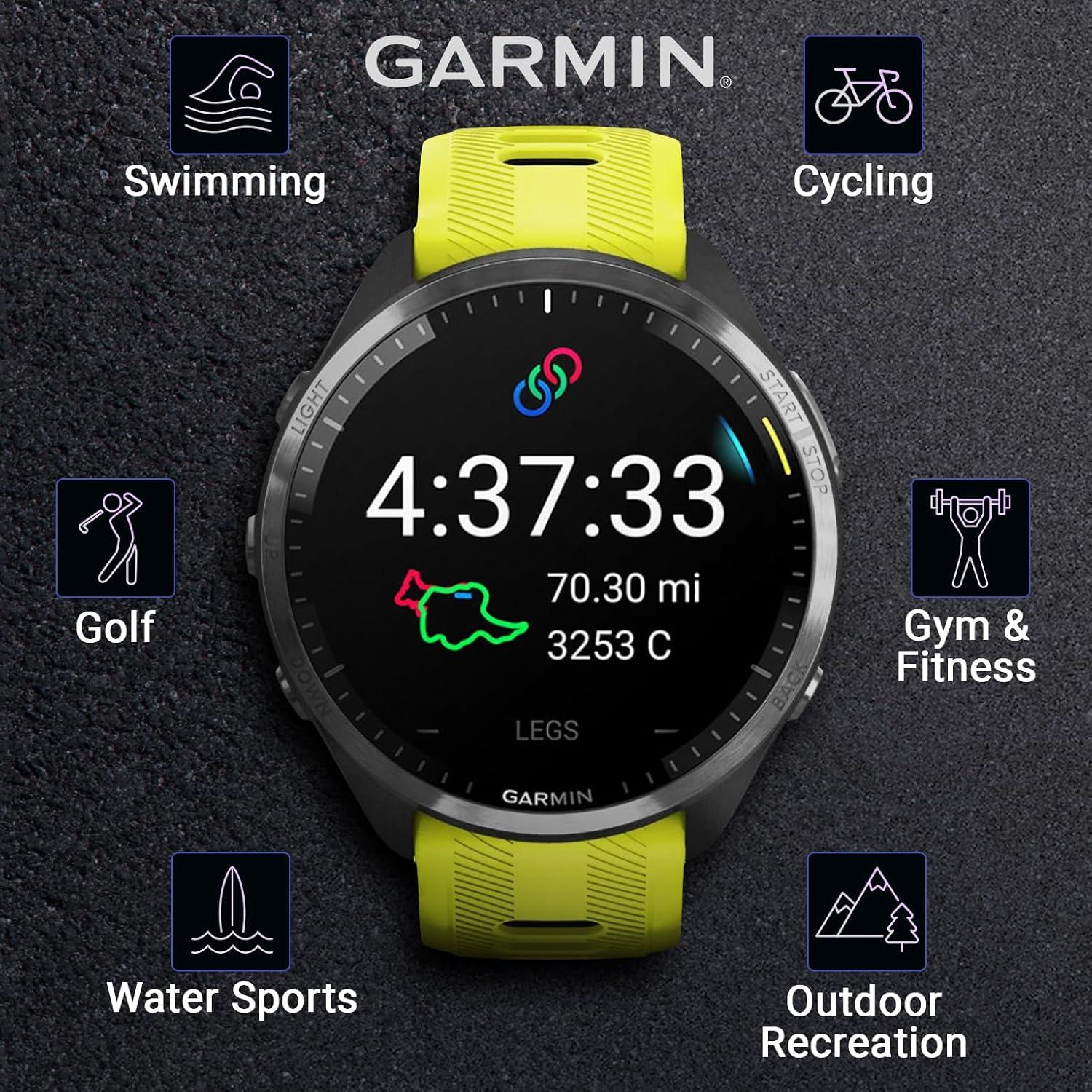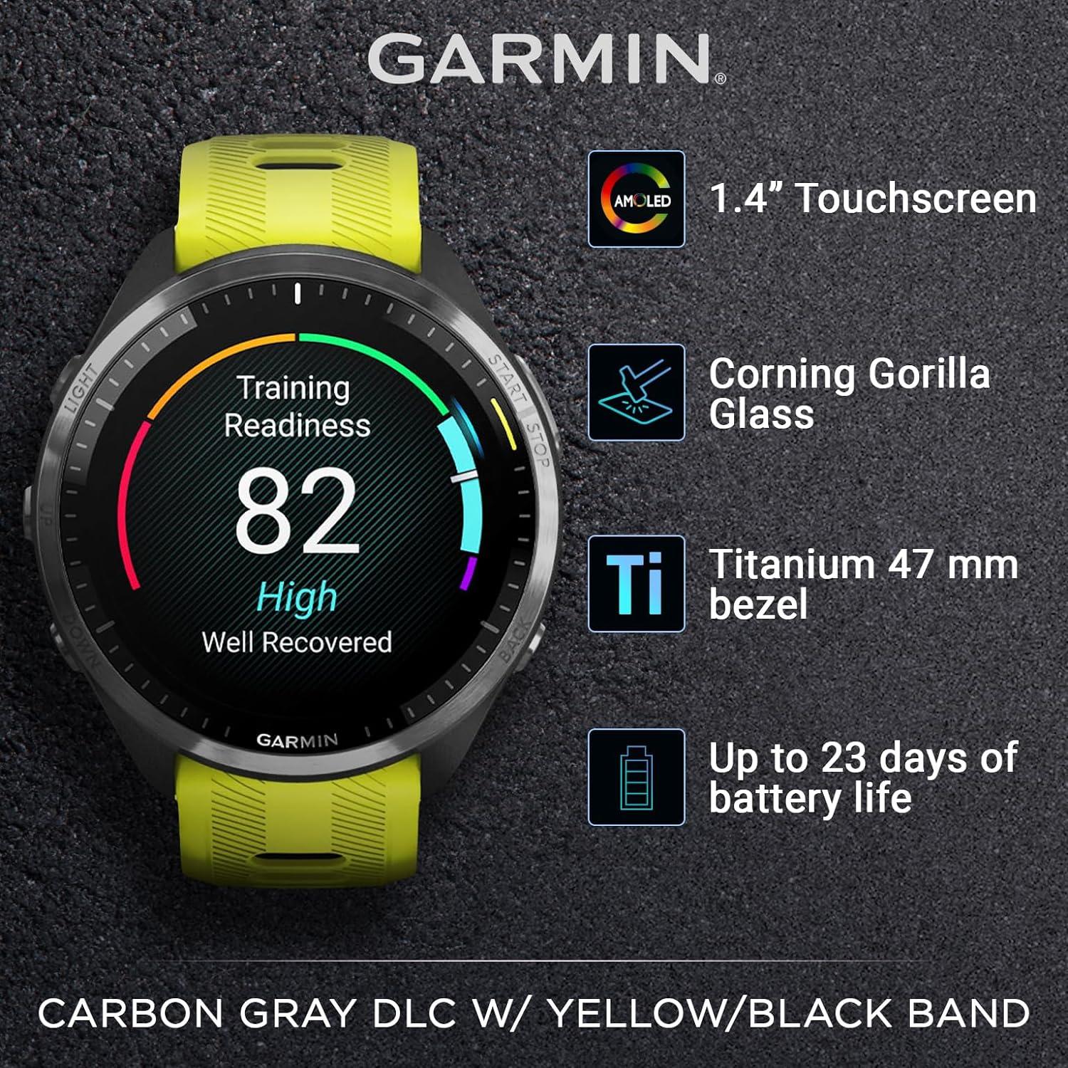 PLAN FOR THE PODIUM: Plan race strategy with personalized daily suggested workouts based on the race and course that you input into the Garmin Connect app and then view the race widget on your watch; daily suggested workouts adapt after every run to match performance and recovery. As soon as you wake up, get your morning report with an overview of sleep, recovery and training outlook alongside HRV status, training readiness and weather.