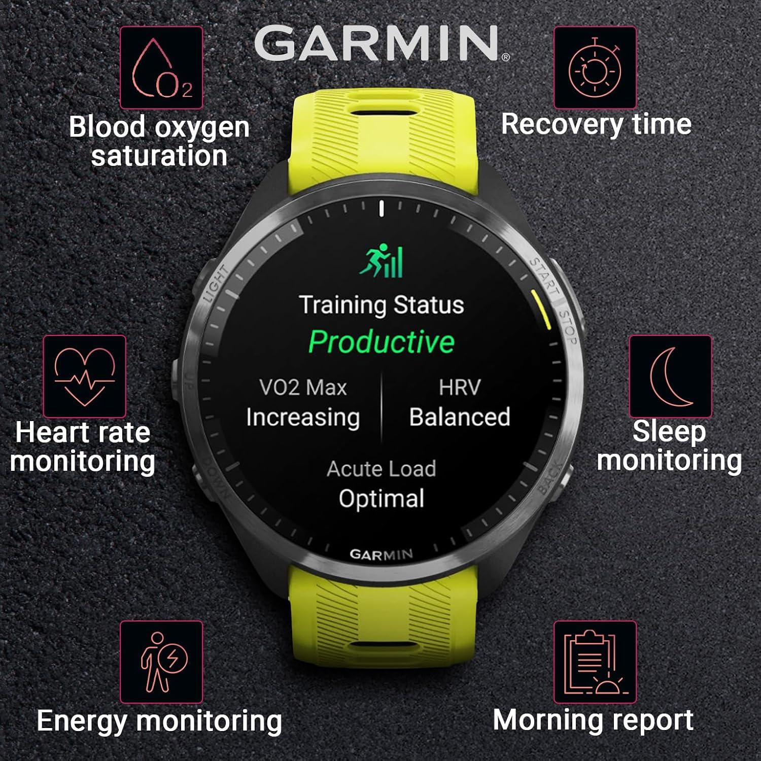 PLAN FOR THE PODIUM: Plan race strategy with personalized daily suggested workouts based on the race and course that you input into the Garmin Connect app and then view the race widget on your watch; daily suggested workouts adapt after every run to match performance and recovery. As soon as you wake up, get your morning report with an overview of sleep, recovery and training outlook alongside HRV status, training readiness and weather.