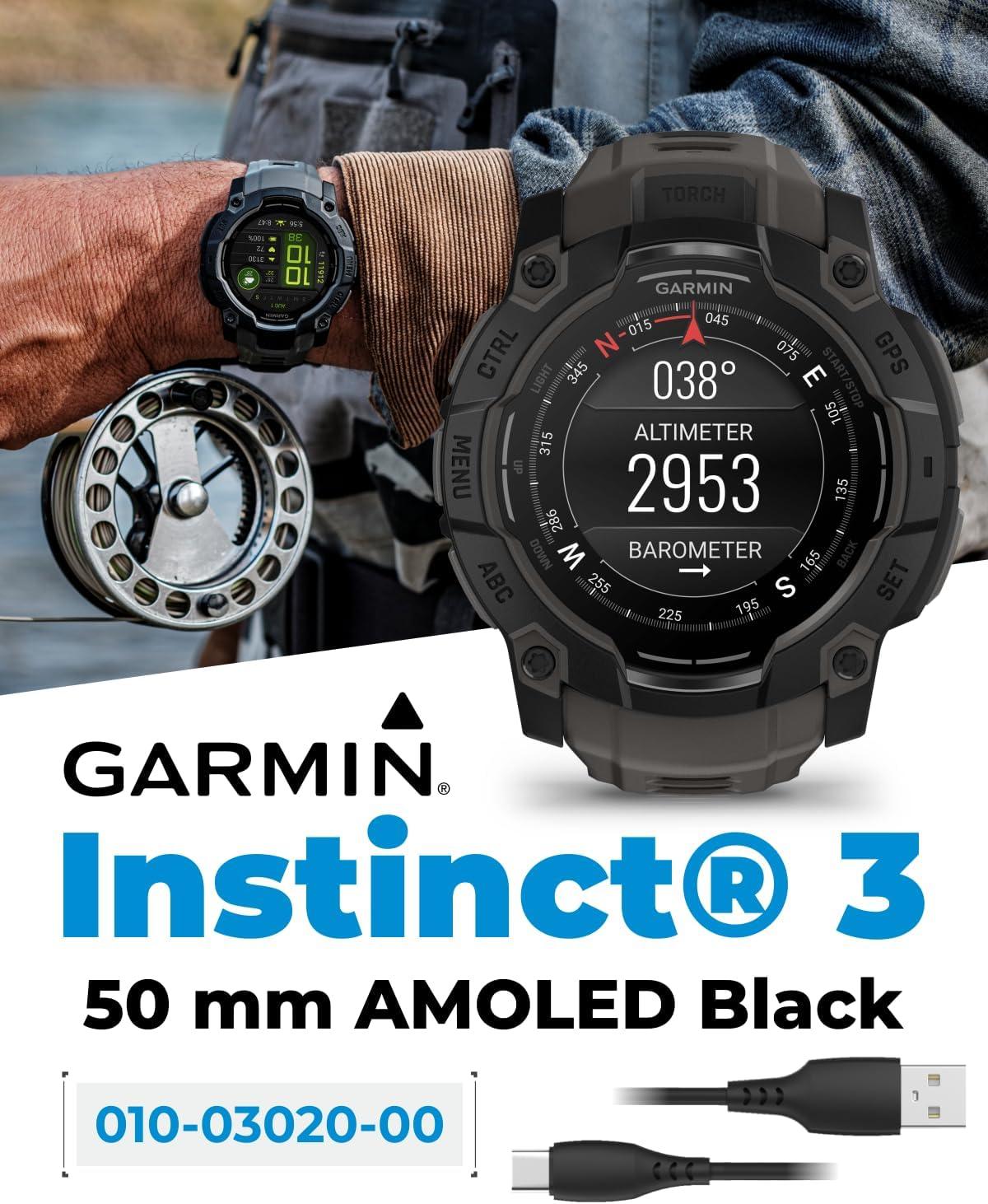 IN THE BOX: 1X Garmin Instinct 3 50mm Smartwatch, 1x Charging/data cable, 1x Wearable4U Power Bank, documentation
