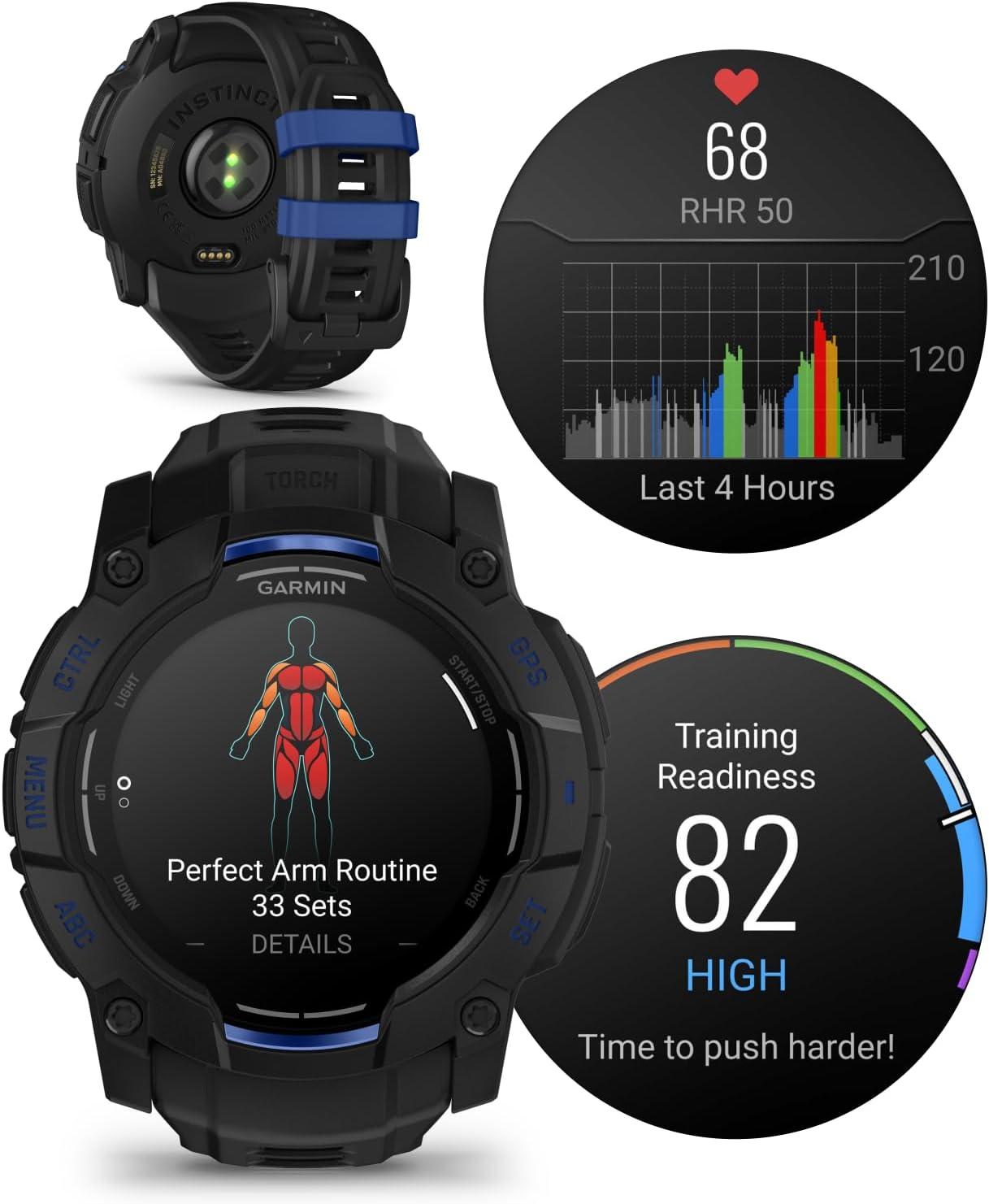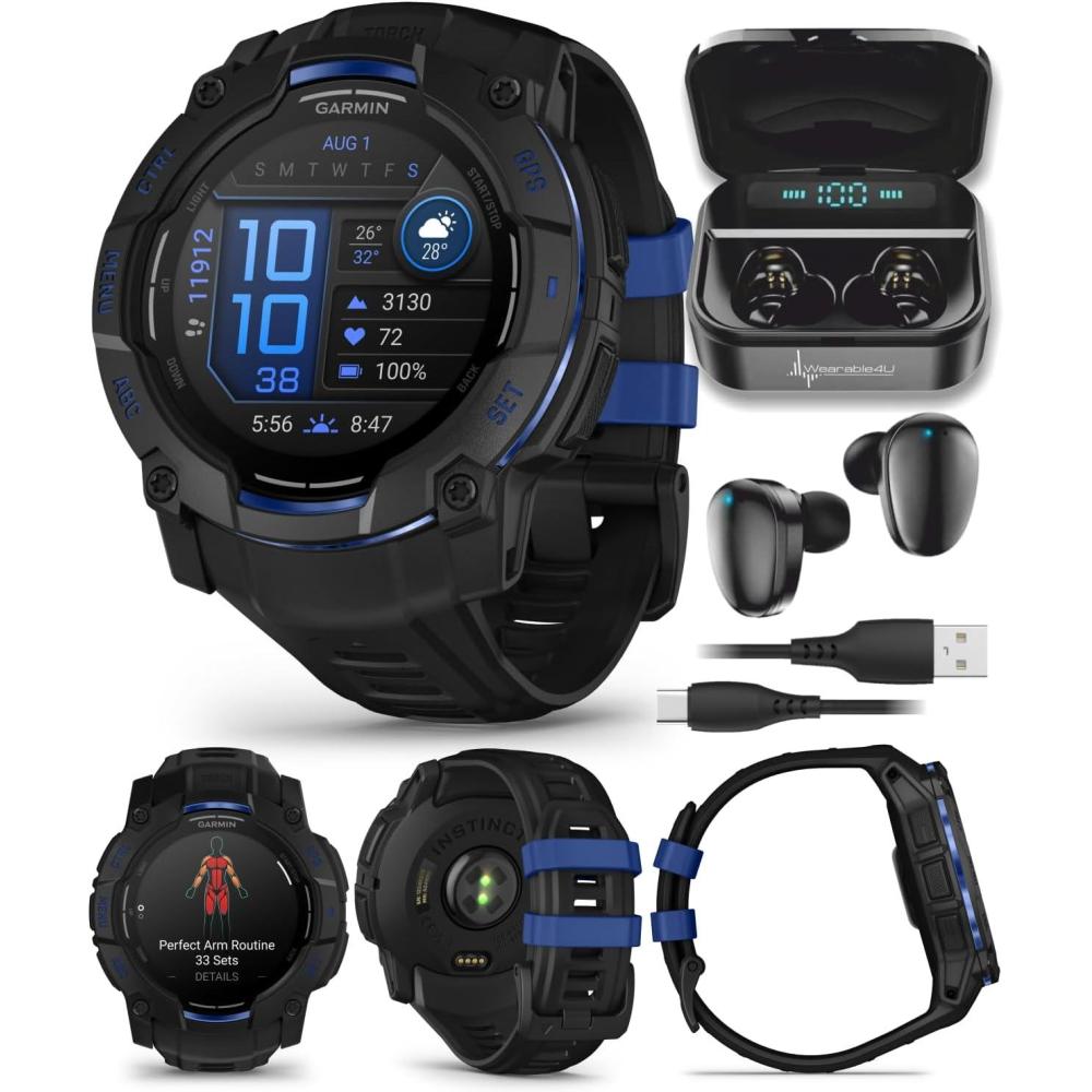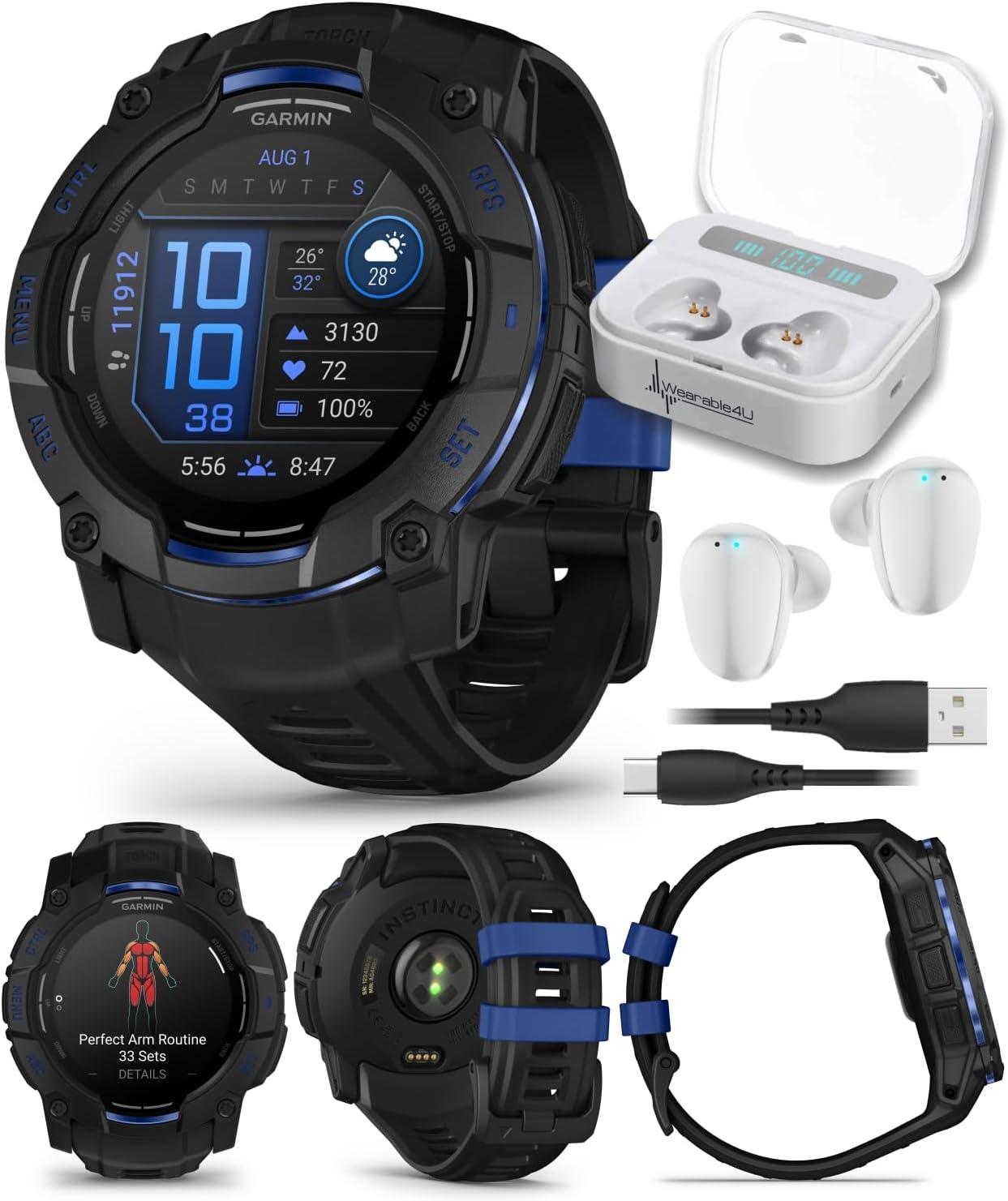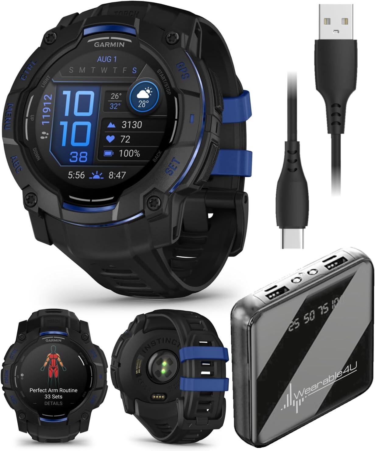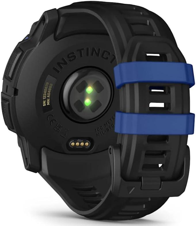 Wearable4U Garmin Instinct E 45mm, Rugged Outdoor GPS Smartwatch, 24/7 Health Monitoring, Wrist-Based Heart Rate, Up to 16 Days of Battery Life, Black with Charcoal Band Bundle(Black/Bolt Blue)