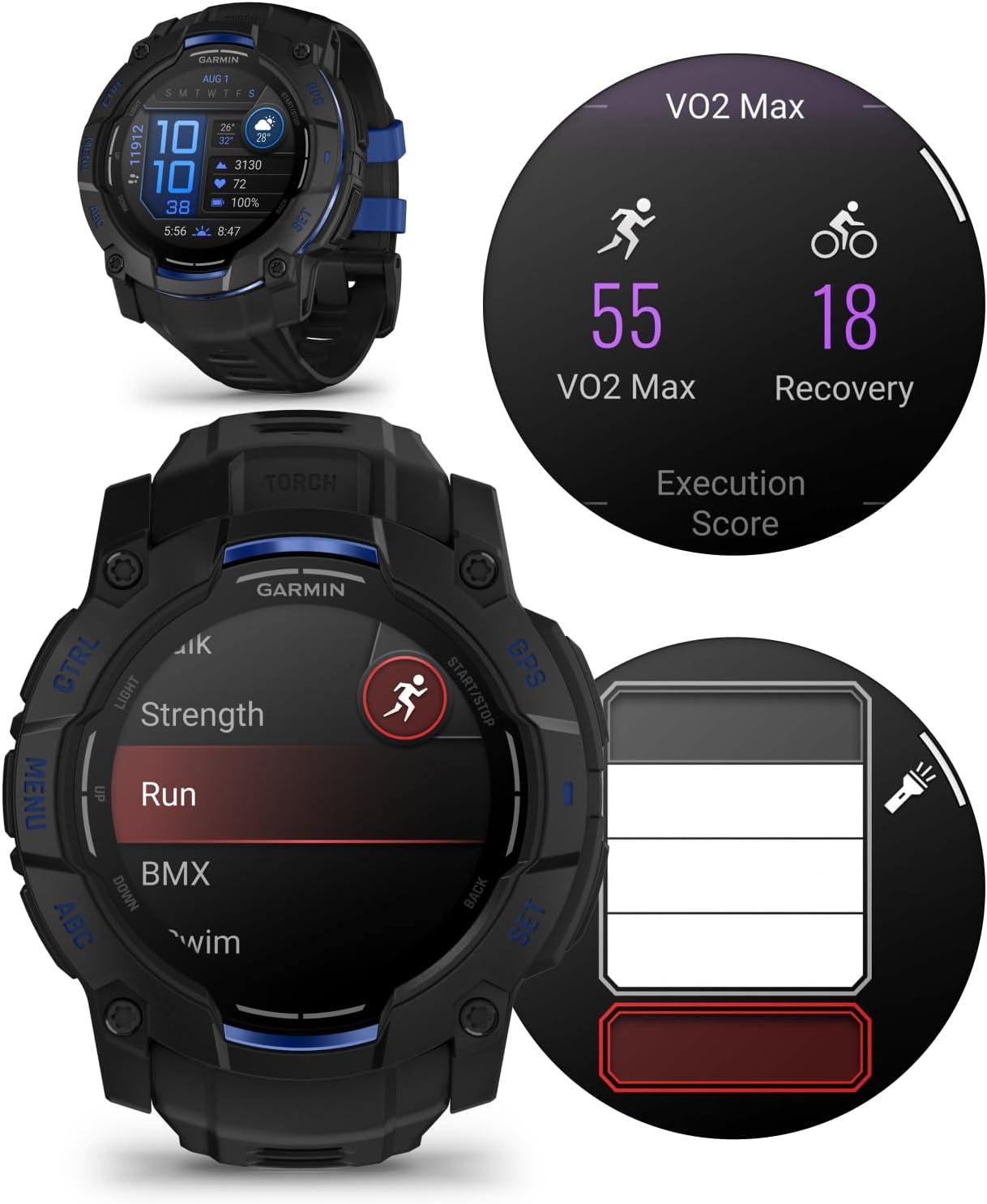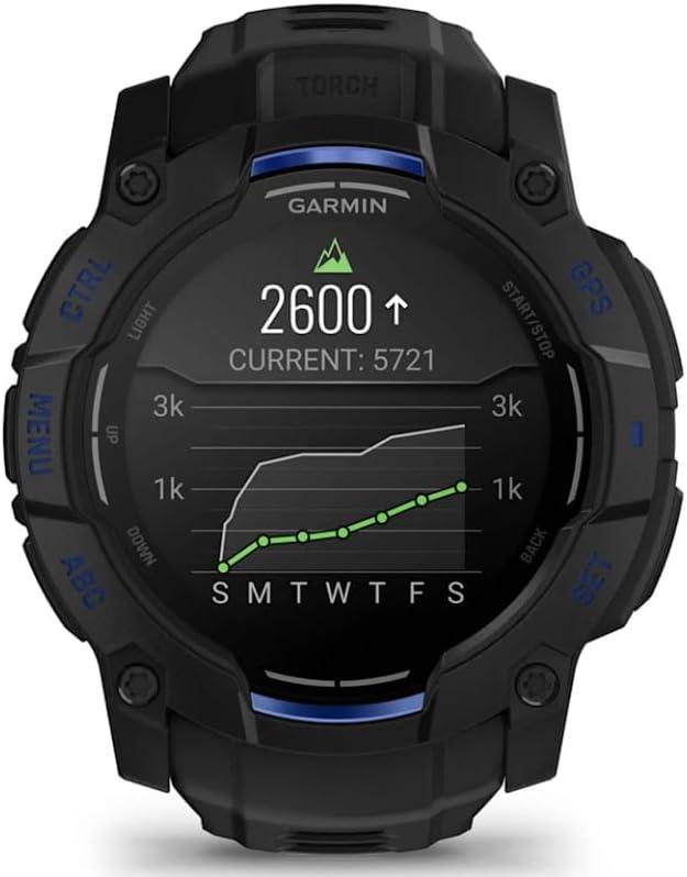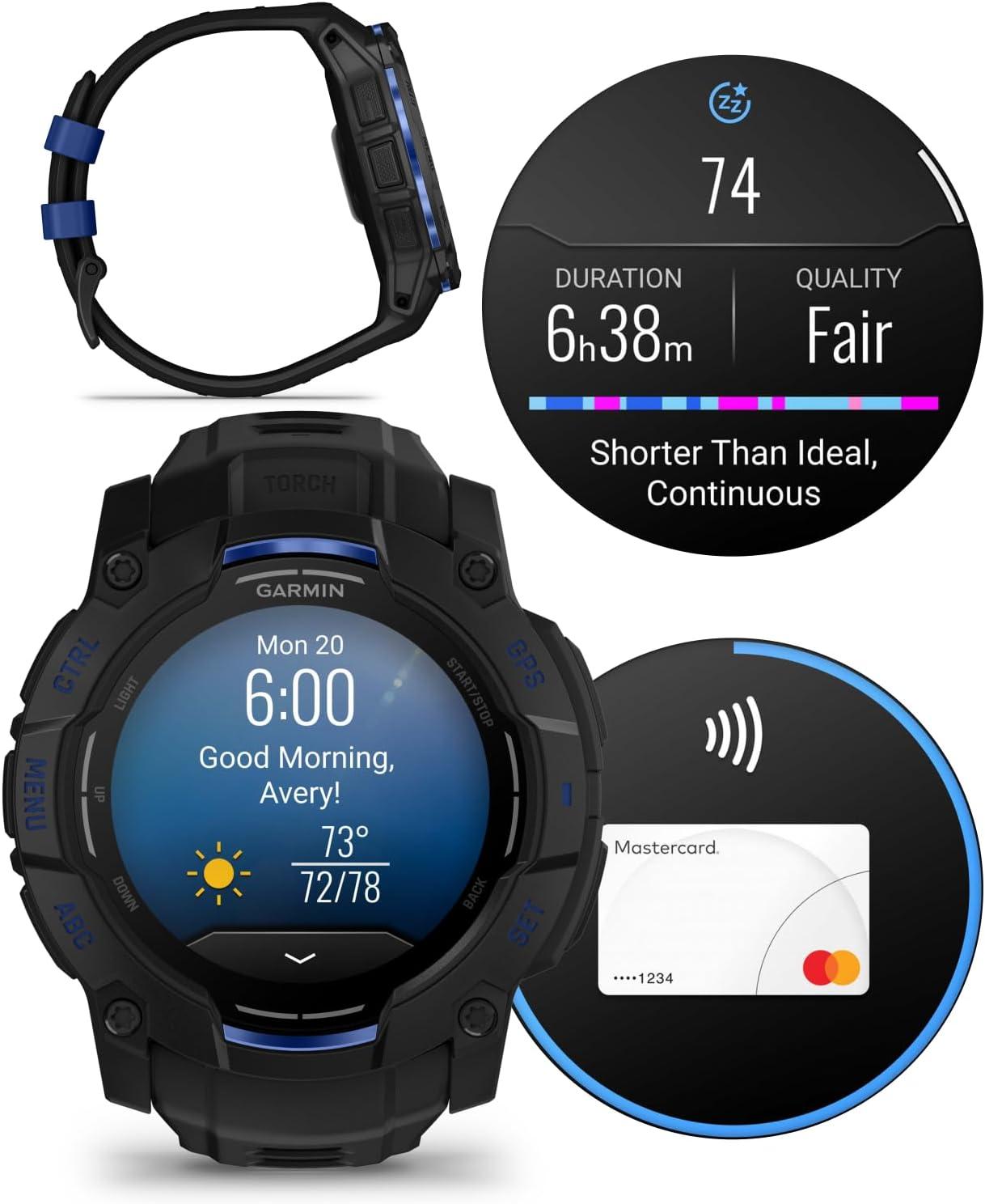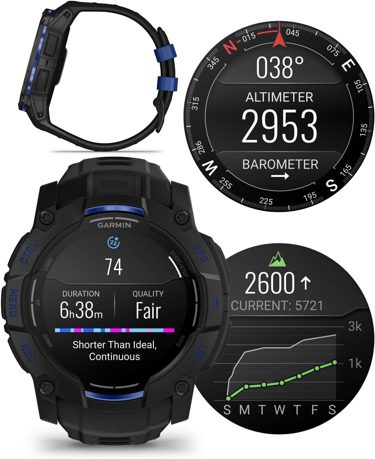 Wearable4U Garmin Instinct E 45mm, Rugged Outdoor GPS Smartwatch, 24/7 Health Monitoring, Wrist-Based Heart Rate, Up to 16 Days of Battery Life, Black with Charcoal Band Bundle(Black/Bolt Blue)