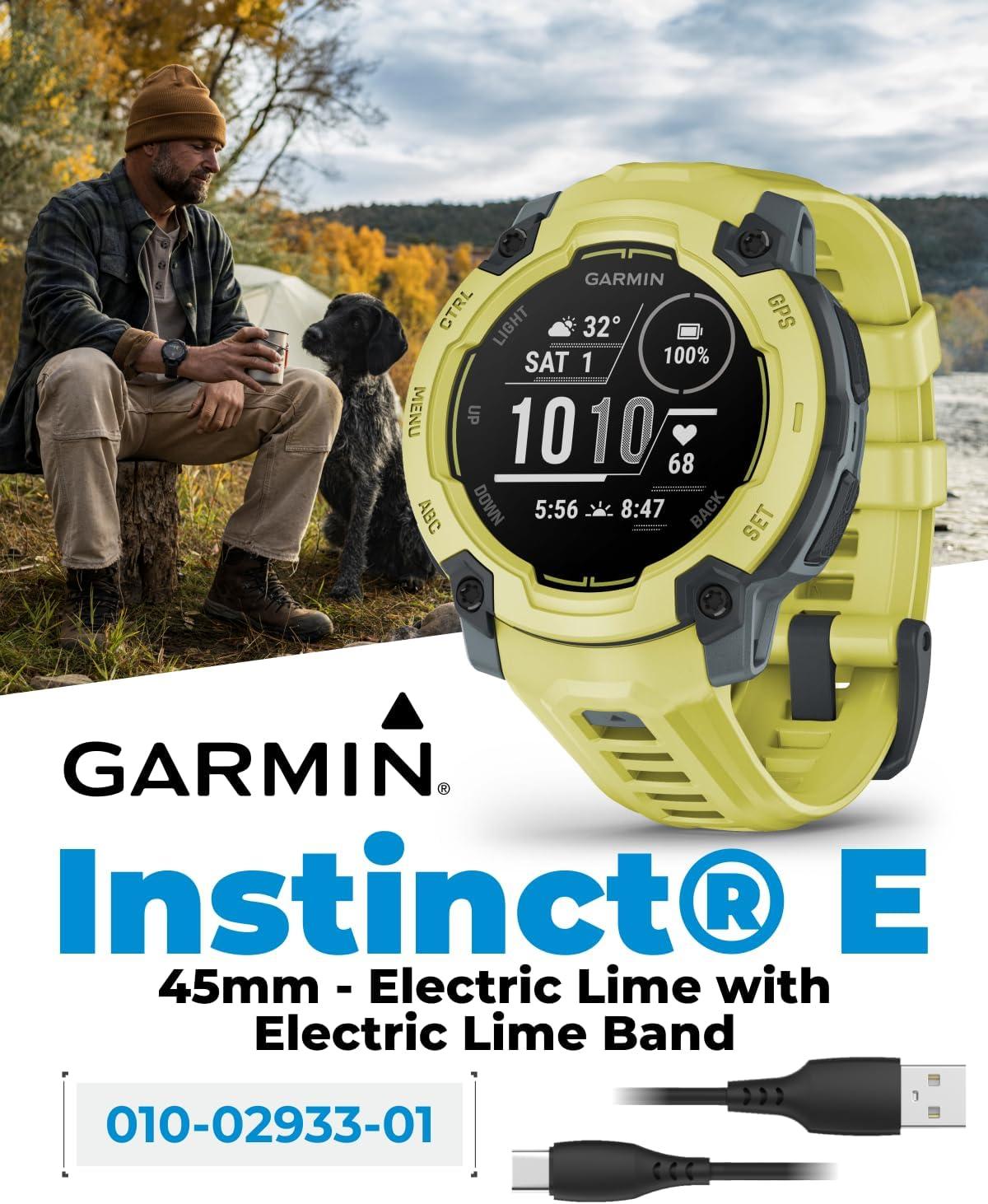 Wearable4U Garmin Instinct E 45mm, Rugged Outdoor GPS Smartwatch, 24/7 Health Monitoring, Wrist-Based Heart Rate, Up to 16 Days of Battery Life, Black with Charcoal Band Bundle(Electric Lime)
