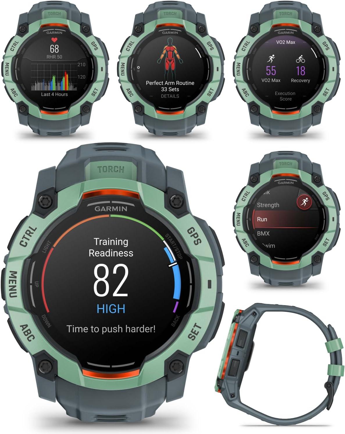 imageWearable4U Garmin Instinct E 45mm Rugged Outdoor GPS Smartwatch 247 Health Monitoring WristBased Heart Rate Up to 16 Days of Battery Life Black with Charcoal Band BundleWhitestoneBlackBlue