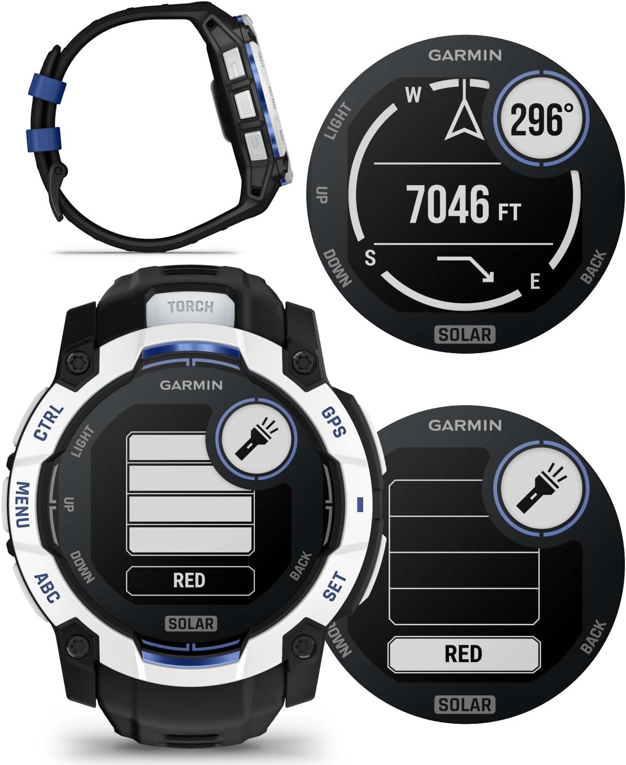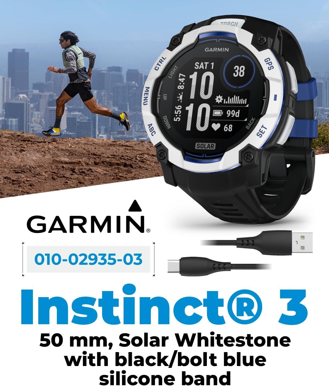 Wearable4U Garmin Instinct E 45mm, Rugged Outdoor GPS Smartwatch, 24/7 Health Monitoring, Wrist-Based Heart Rate, Up to 16 Days of Battery Life, Black with Charcoal Band Bundle(Whitestone/Black/Blue)