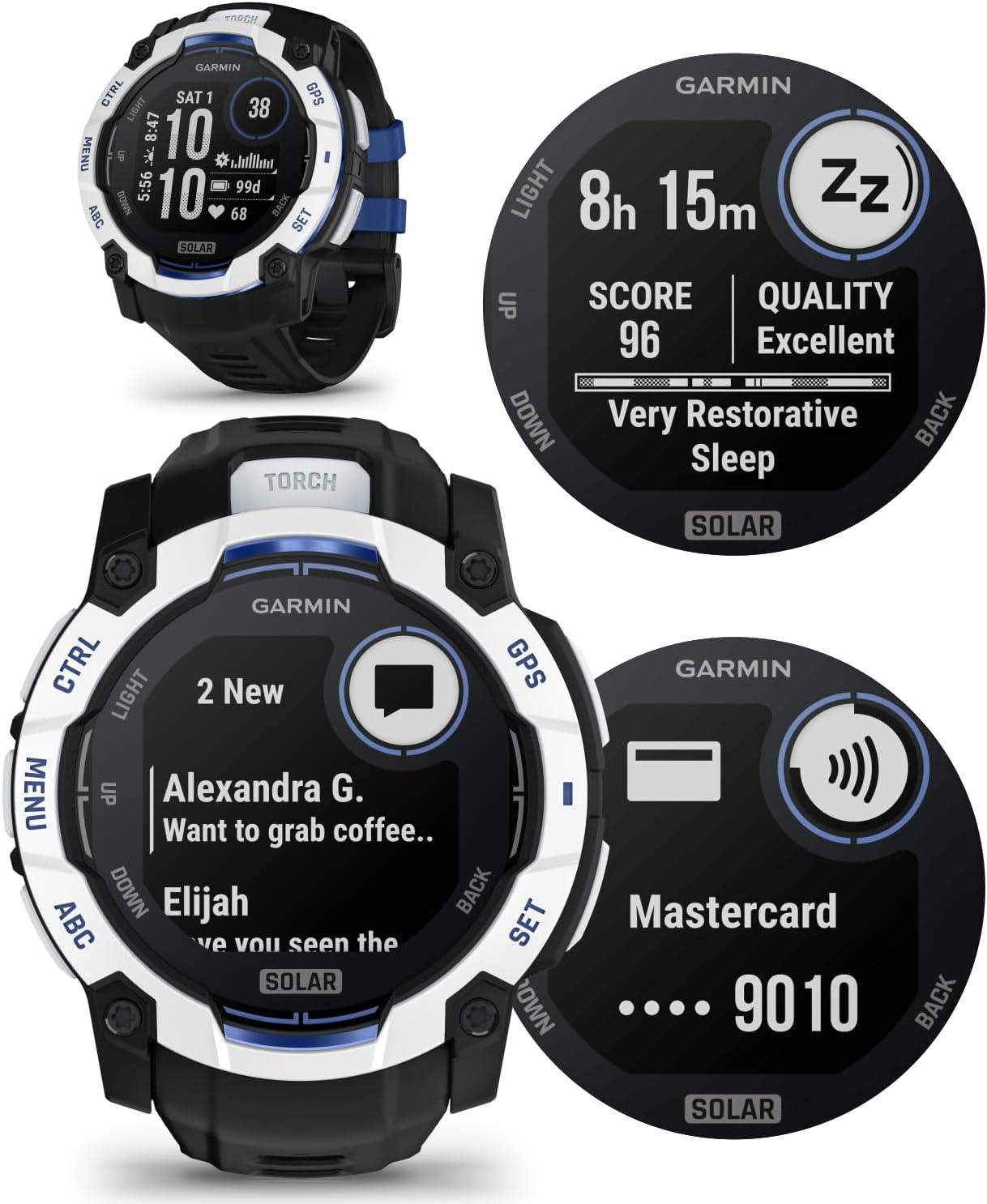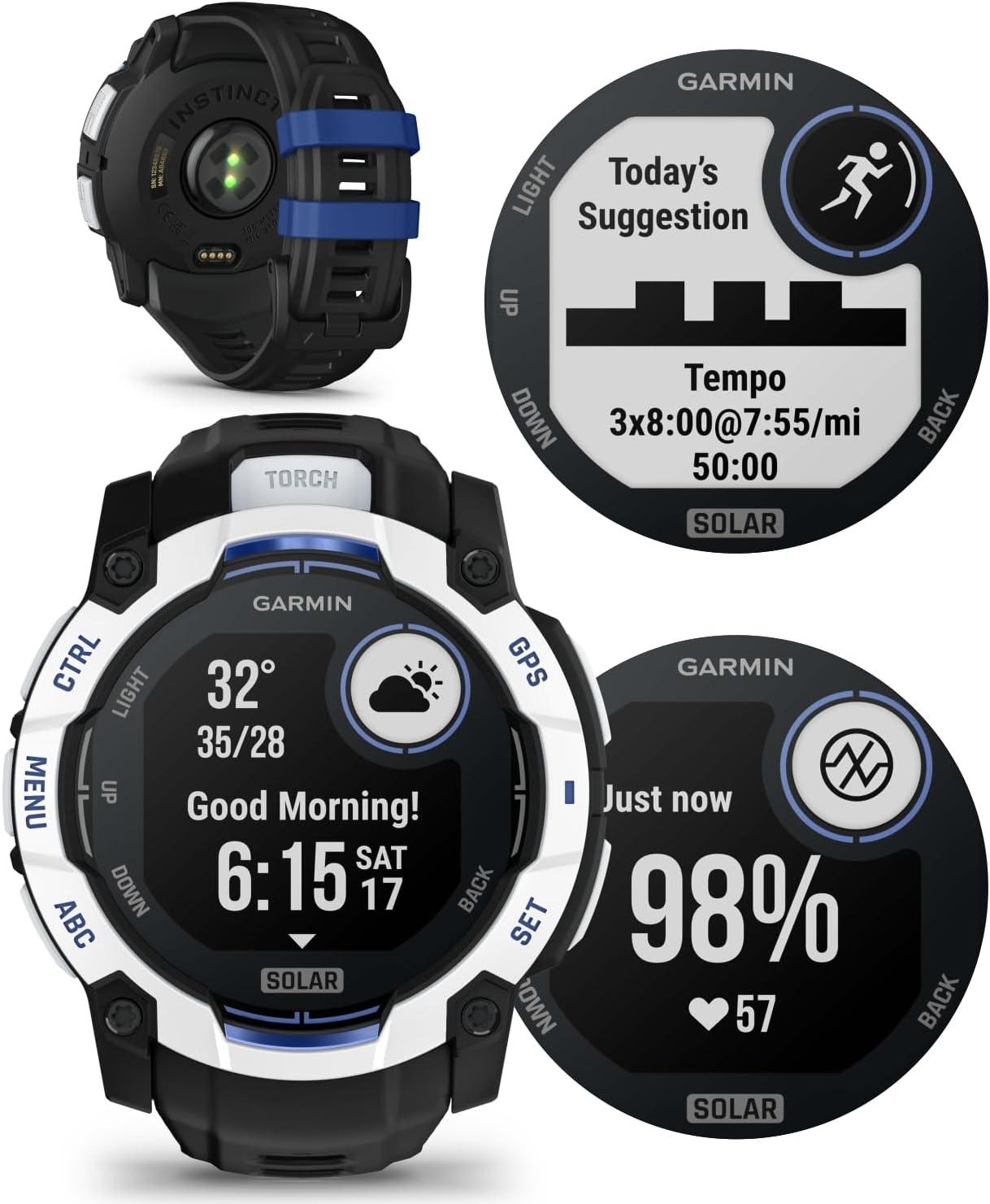 imageWearable4U Garmin Instinct E 45mm Rugged Outdoor GPS Smartwatch 247 Health Monitoring WristBased Heart Rate Up to 16 Days of Battery Life Black with Charcoal Band BundleWhitestoneBlackBlue