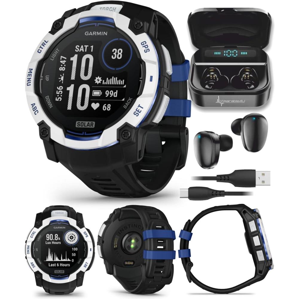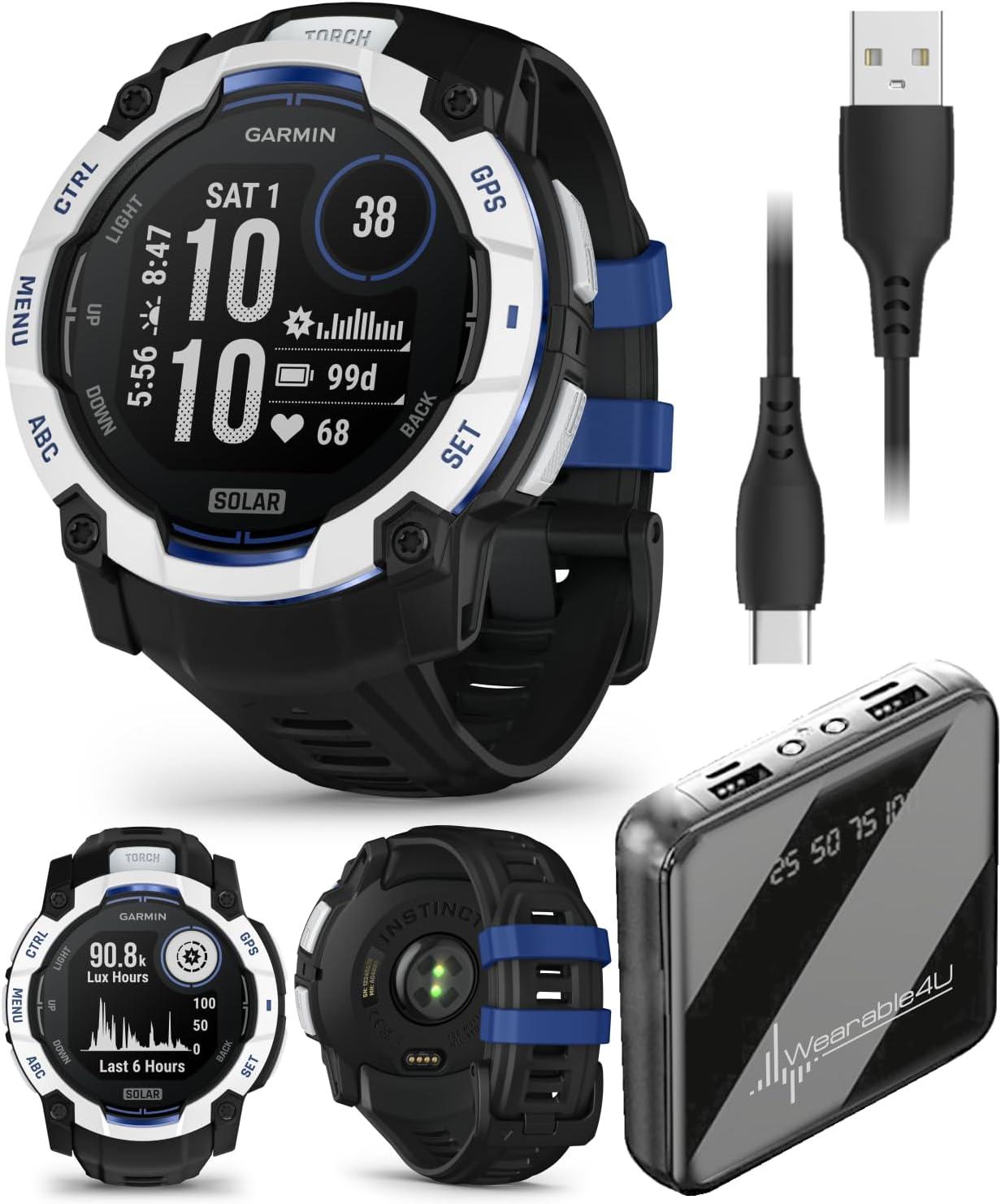 Wearable4U Garmin Instinct E 45mm, Rugged Outdoor GPS Smartwatch, 24/7 Health Monitoring, Wrist-Based Heart Rate, Up to 16 Days of Battery Life, Black with Charcoal Band Bundle(Whitestone/Blue)