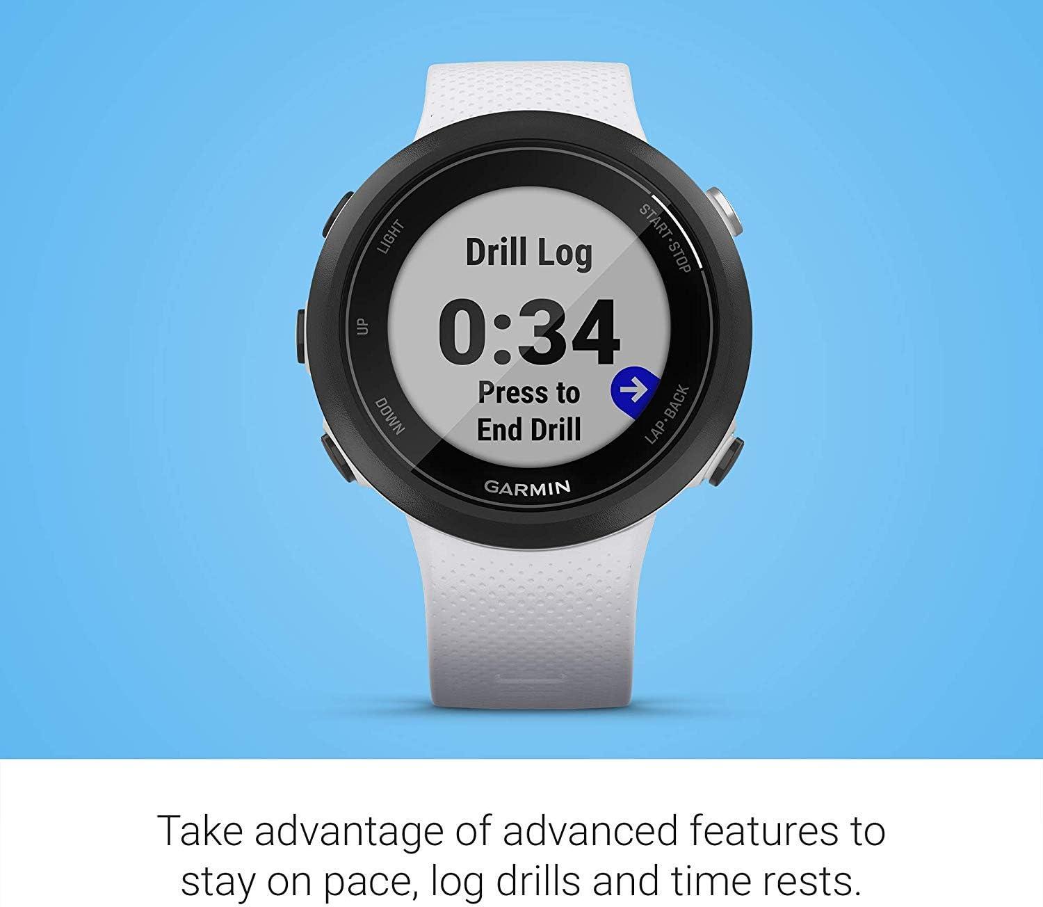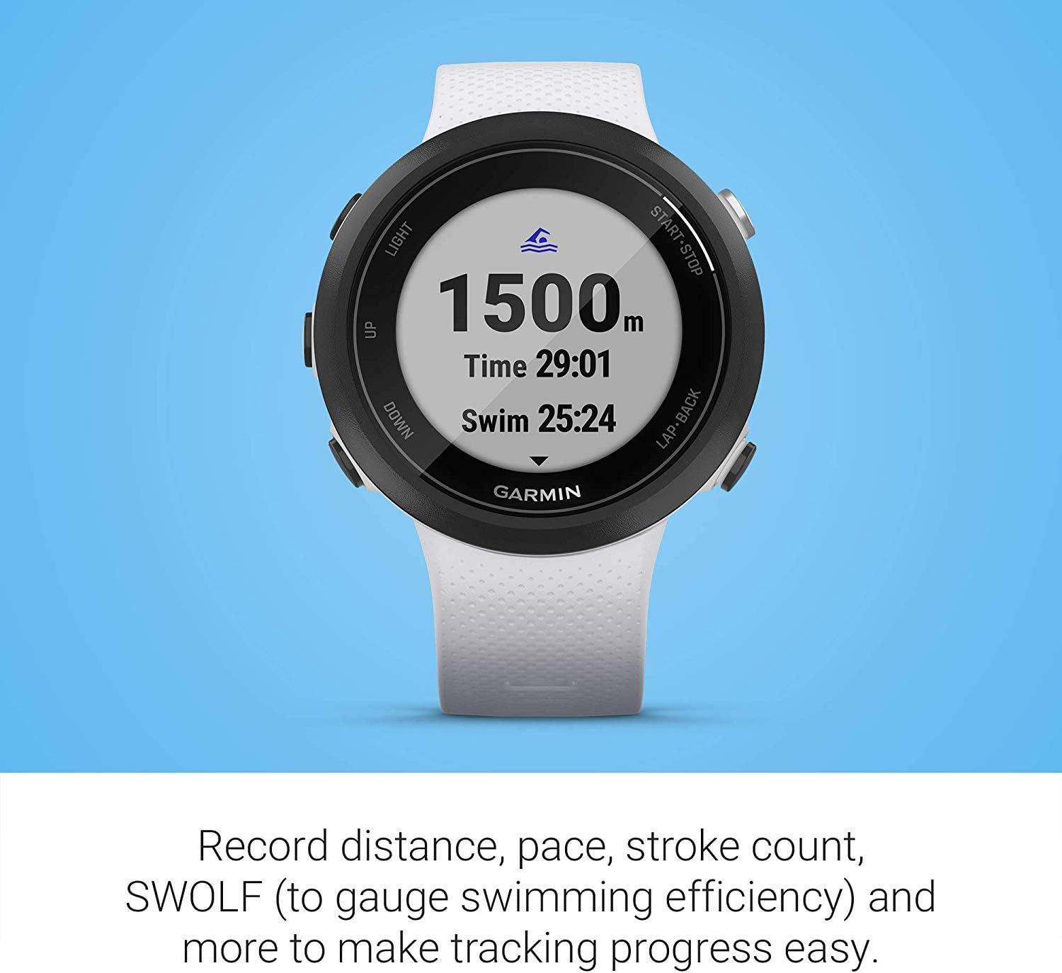 Pool swim mode: records distance, pace, stroke count, stroke type and SWOLF (gauges swimming efficiency)