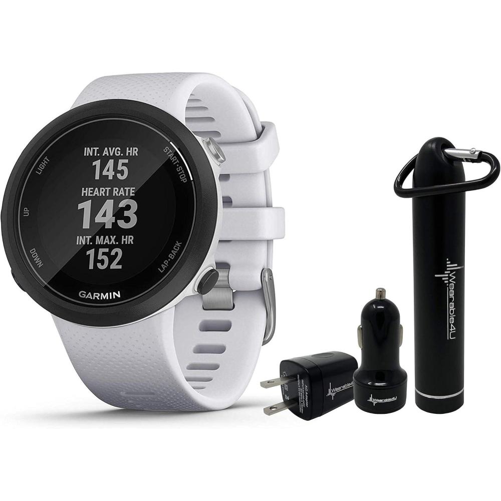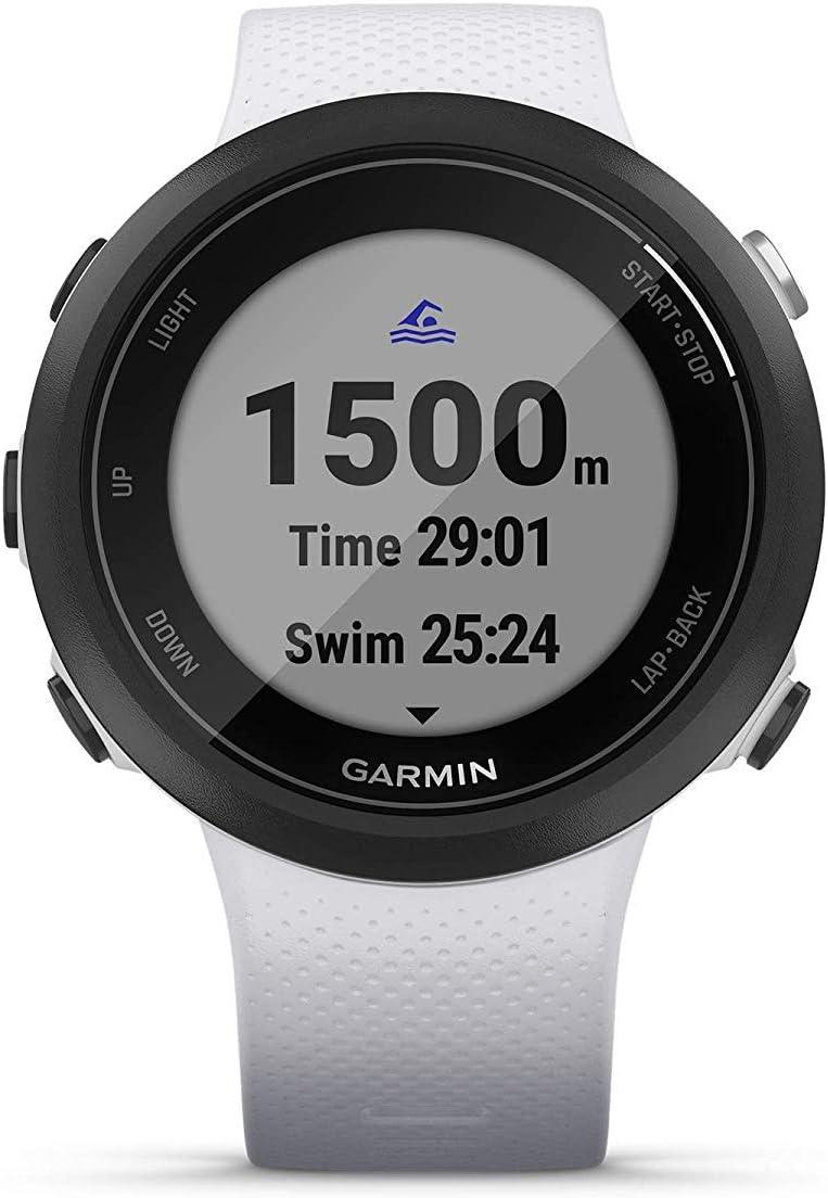 Open-water swim mode: uses built-in GPS for swims in lakes, oceans or rivers; records distance, pace, stroke count, SWOLF, stroke rate and stroke distance