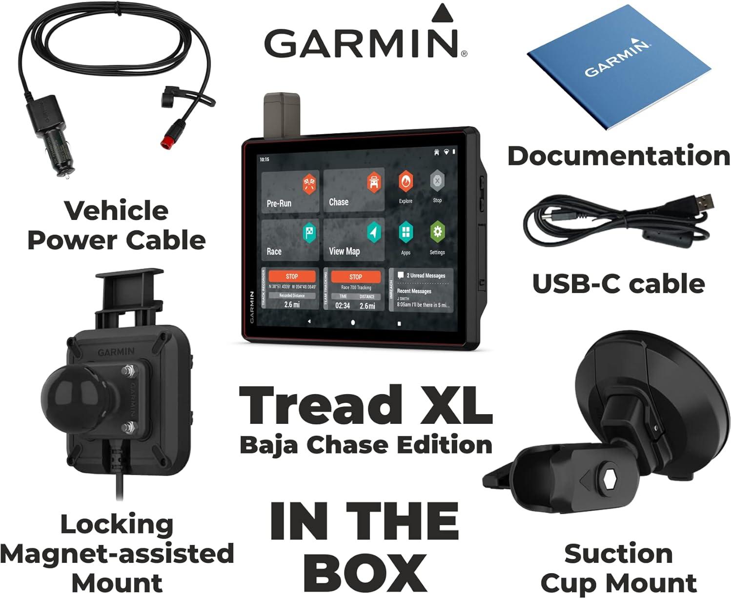 IN THE BOX: 1x Tread XL – Baja Chase Edition Navigator, 1x suction cup mount, 1x vehicle power cable, 1x locking magnet-assisted mount, 1x USB-C cable, 1x Wearable4U Power Bank (wa001), 1x Car Charger, 1x Wall Charger, 1x microUSB cable