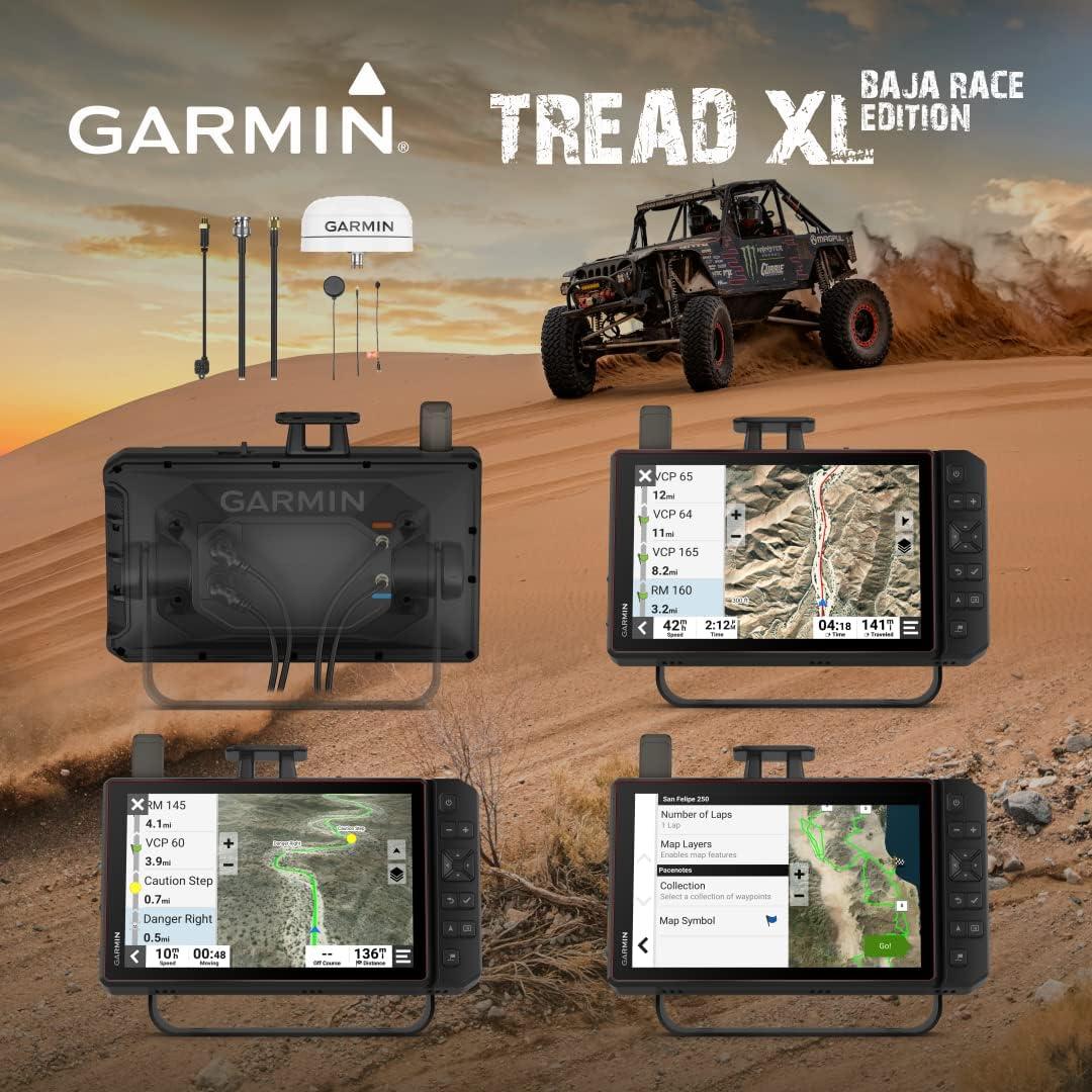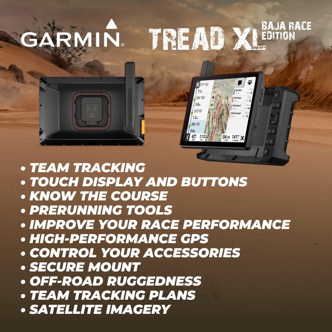 IN THE BOX: 1x Tread XL – Baja Race Edition, 1x Garmin Tread XL – Baja Chase Edition, 1x Tread XL Baja Dock, 1x Tread XL Baja Dock power cable, 1x bail mount, 1x external inReach antenna, 1x external GPS antenna, 1x high-current power cable, 1x USB-C cable, 1x Wearable4U Black EarBuds