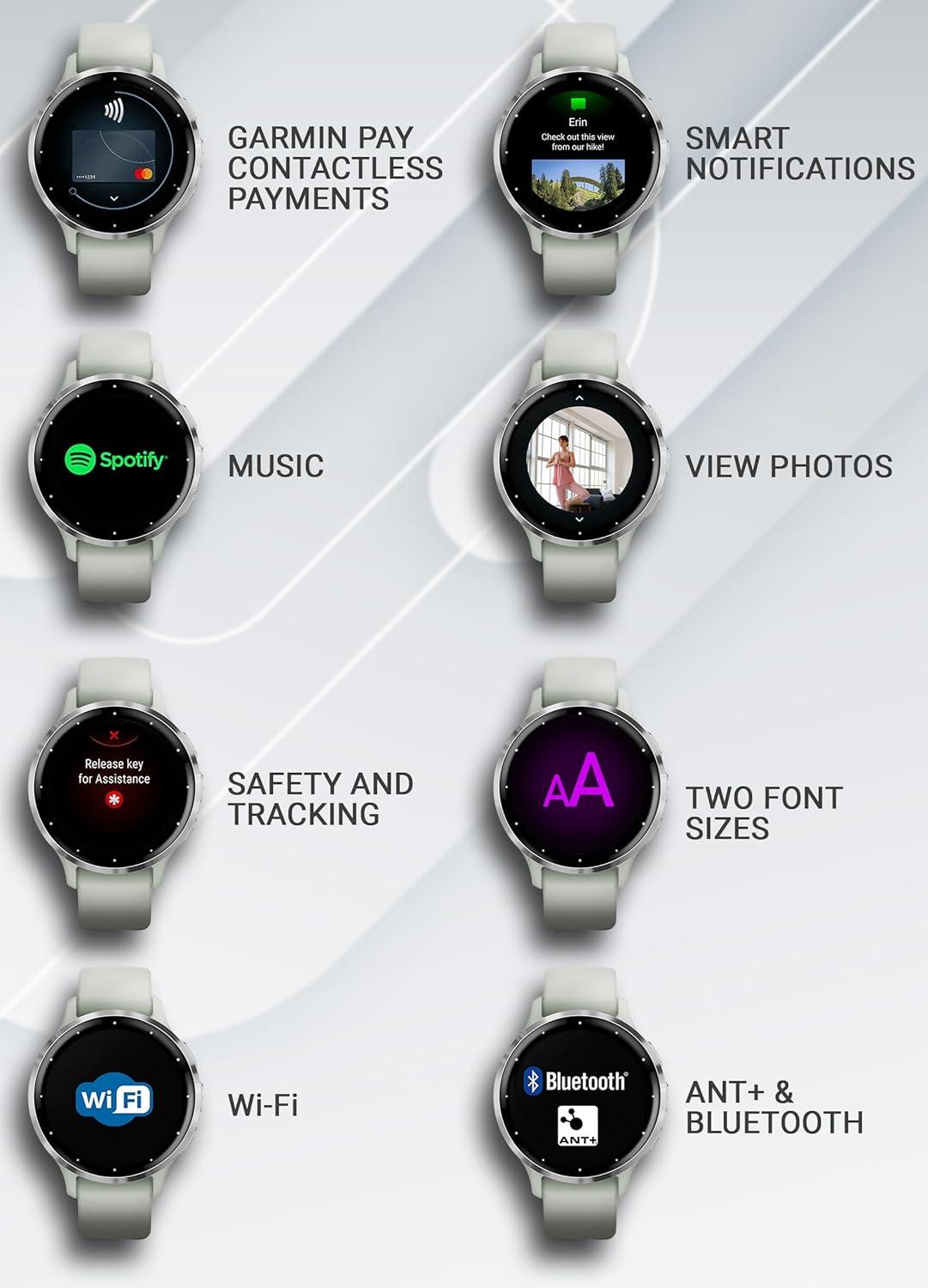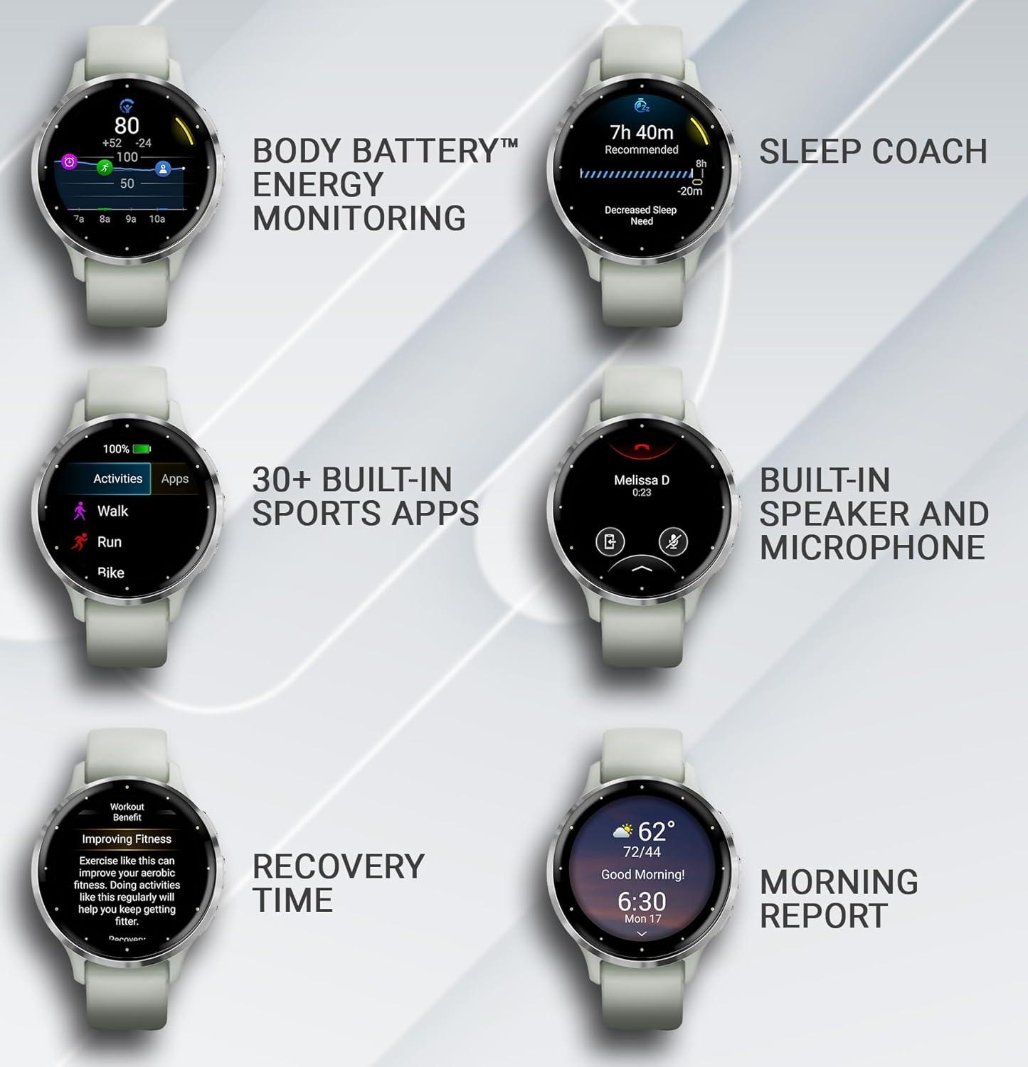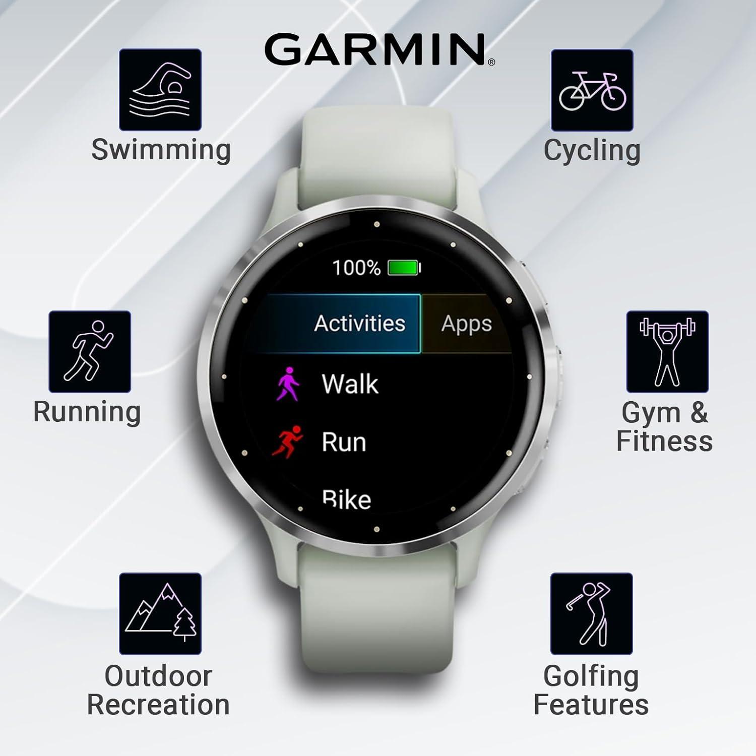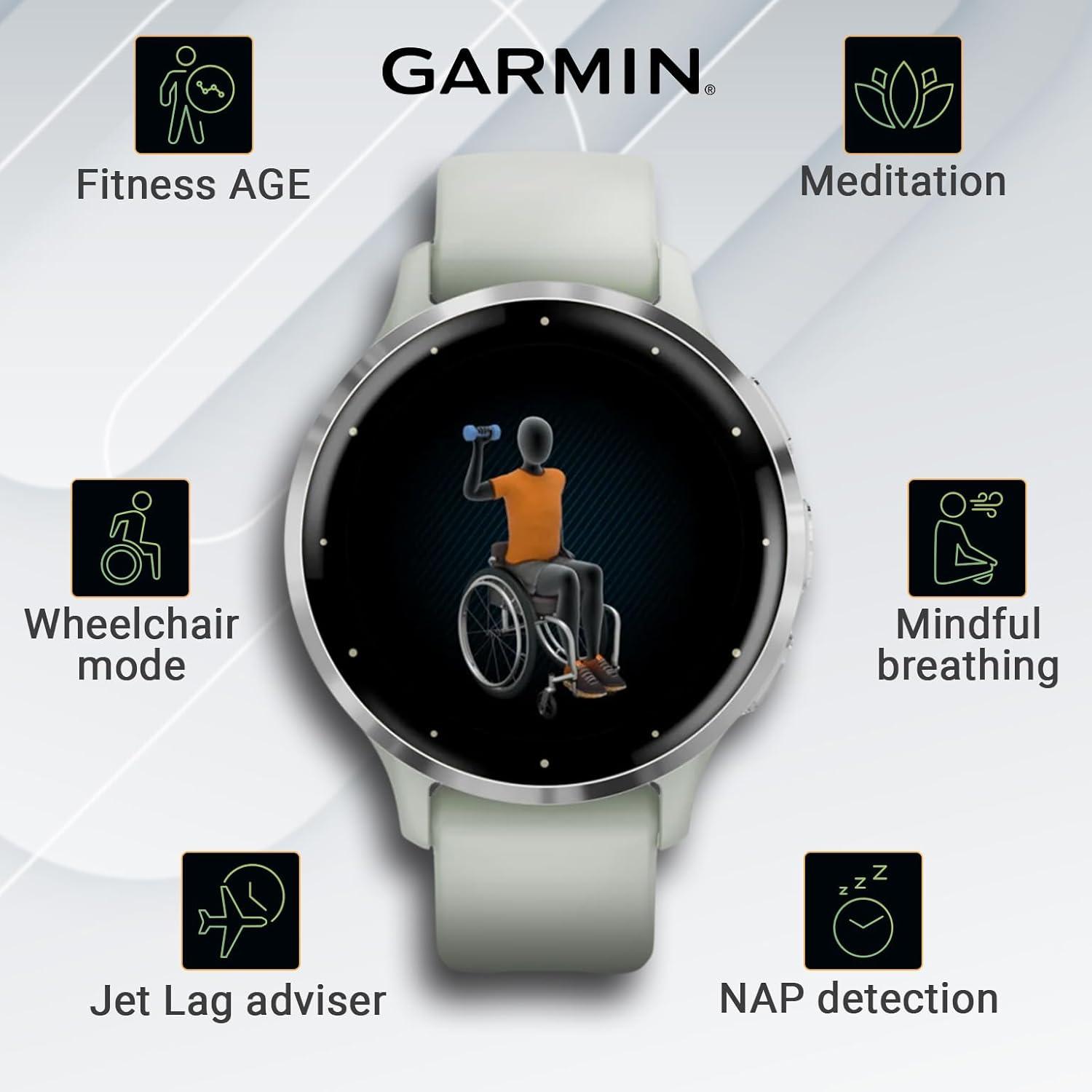 imageWearable4U Garmin Venu 3S GPS Smartwatch AMOLED Display 41 mm Watch Advanced Health and Fitness Features Up to 10 Days of Battery Wheelchair Mode Sleep Coach Sage Gray Black Earbuds BundleSilverWhitestone Black EarBuds