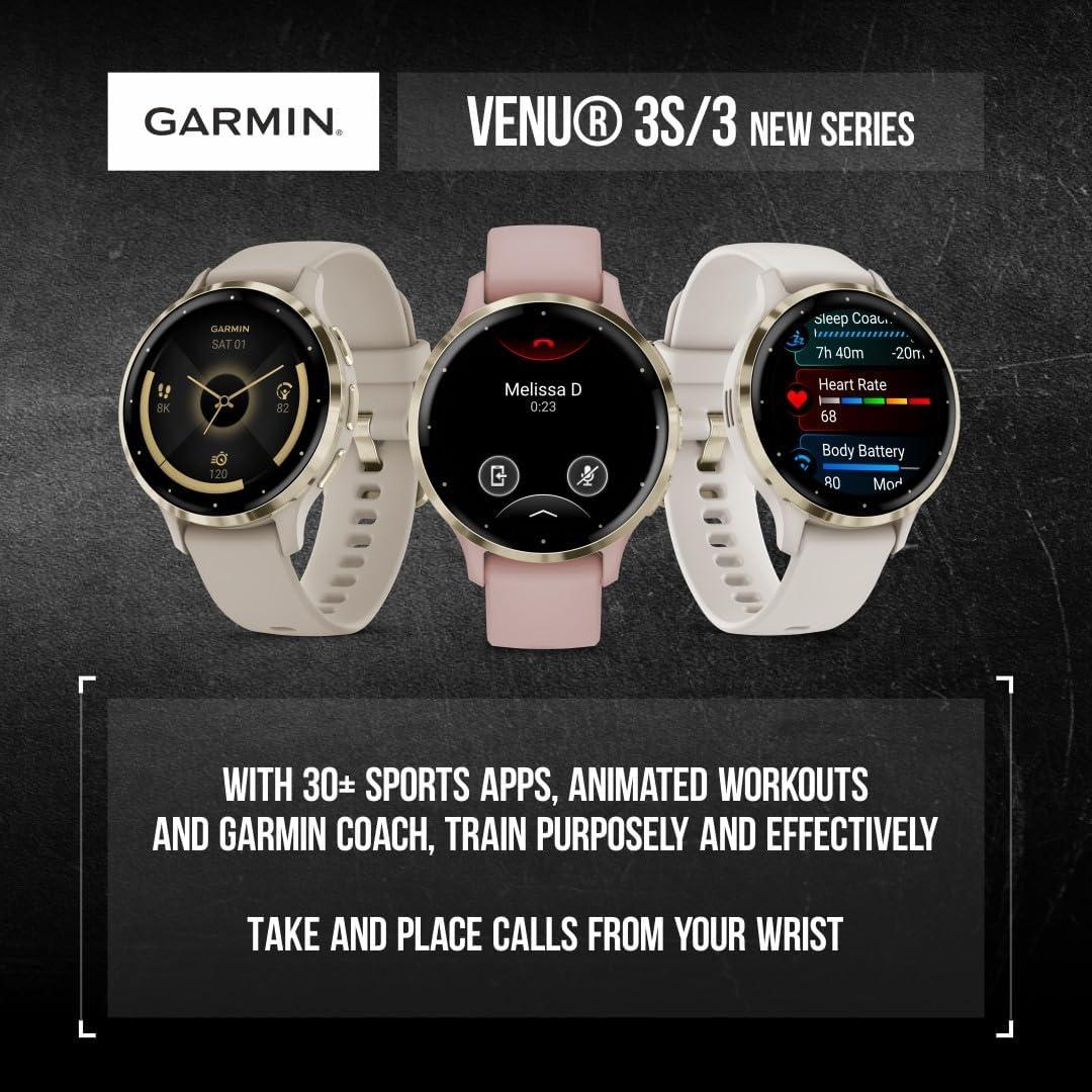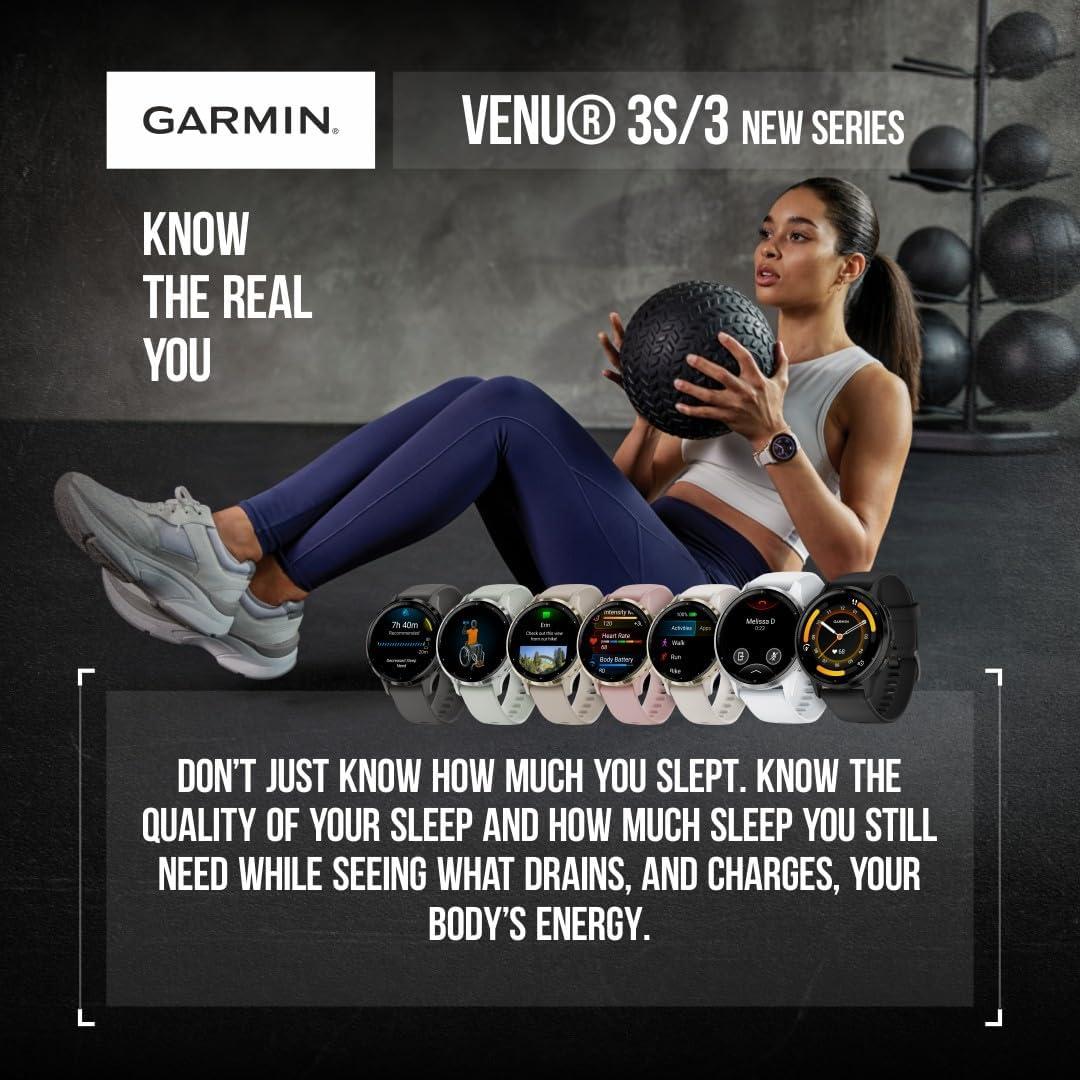 imageWearable4U Garmin Venu 3S GPS Smartwatch AMOLED Display 41 mm Watch Advanced Health and Fitness Features Up to 10 Days of Battery Wheelchair Mode Sleep Coach Sage Gray Black Earbuds BundleSilverWhitestone White EarBuds