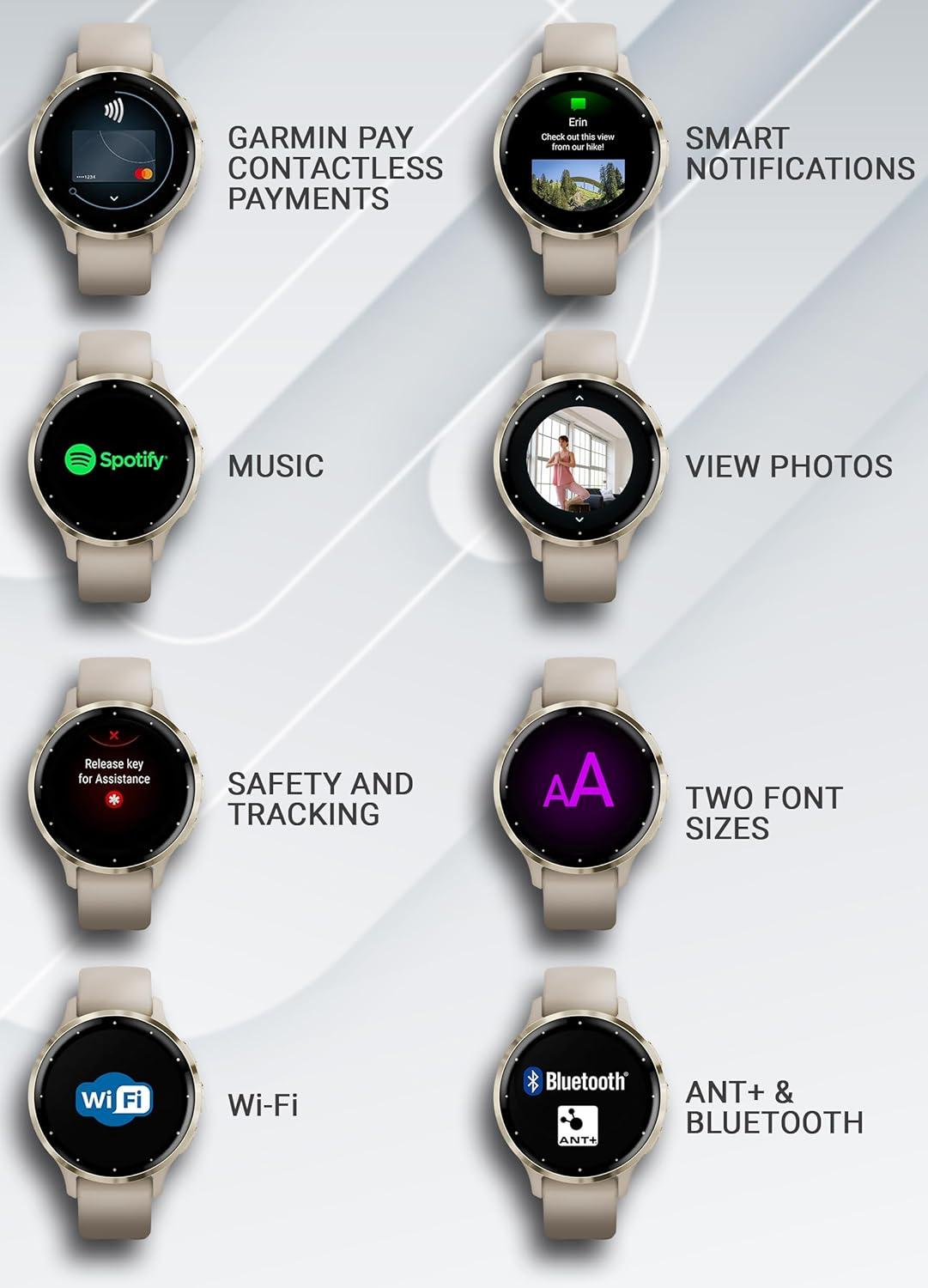imageWearable4U  Garmin Venu 3S GPS Smartwatch AMOLED Display 41mm Watch Advanced Health and Fitness Features Up to 10 Days of Battery Wheelchair Mode Sleep Coach French Gray with Power BankSoft GoldIvory